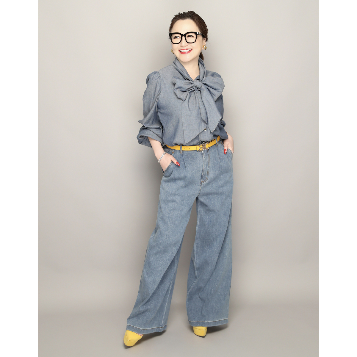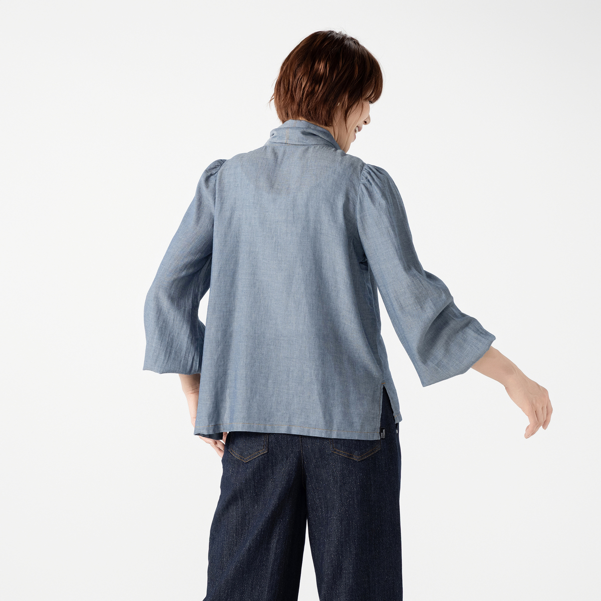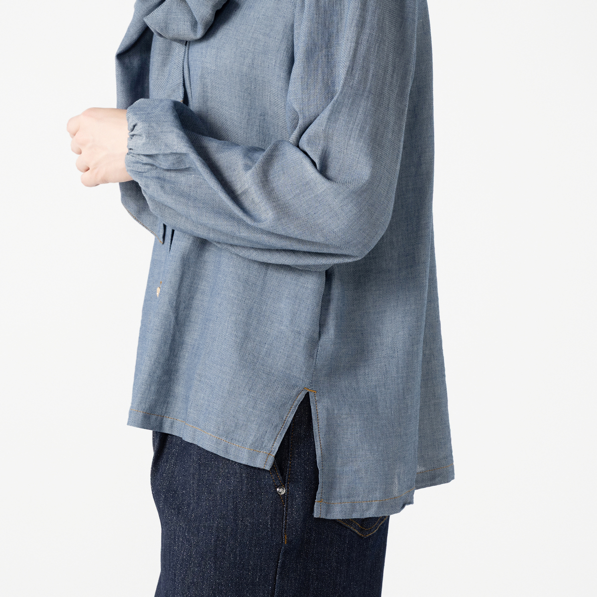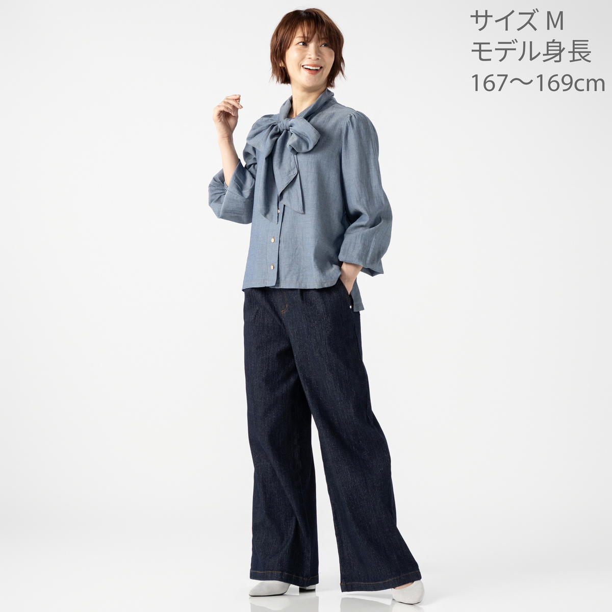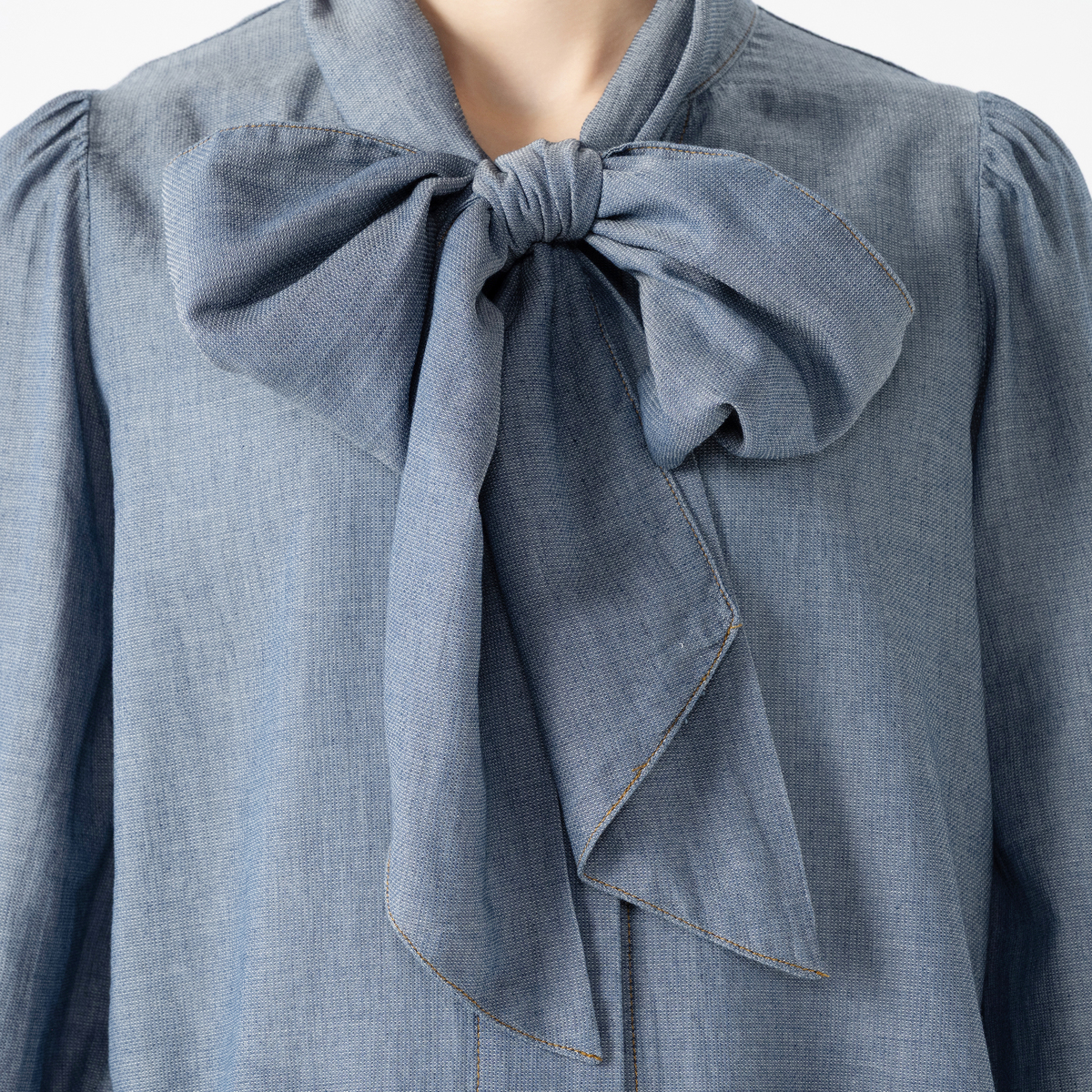 No. 744348 Anne Coquine ライトオンスドビーデニムボウタイブラウス