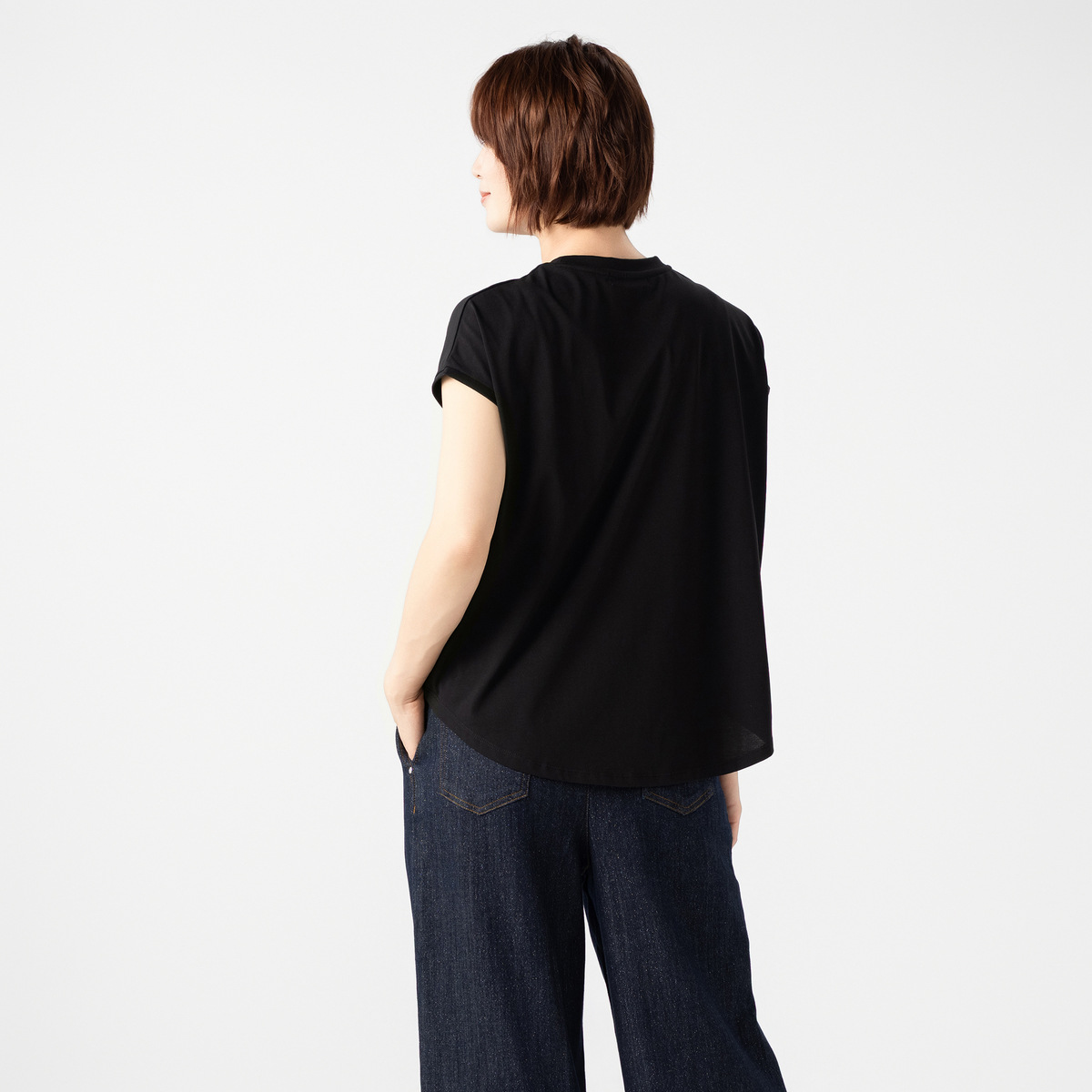 きてみたらシルエットが素晴らしい、生地もよい、、なのですが一般庶民には価格が、、10000円近くの白Tシャツ、、後ろ髪引かれましたが、、返品しました。素敵な商品です着痩せします!!