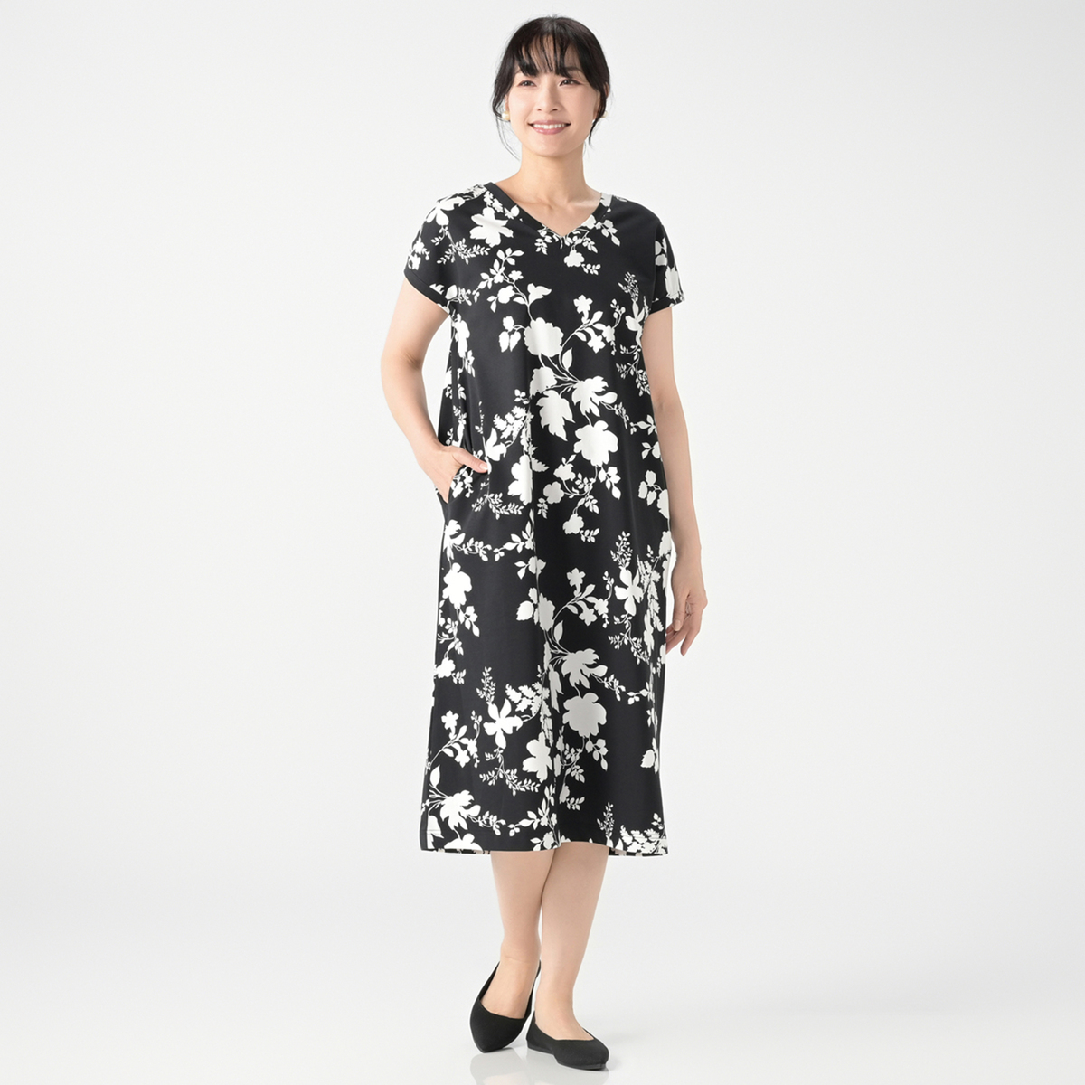 TSVのボタニカルブラックが欲しかったのですが、初日の12:00頃で売り切れこちらの商品を購入しましたが、デザインが、いまいちで大きかったです。ボレロ付きのピオニーホワイトはサイズは丁度良かったです。TSVのワンピースやこちらのワンピースは後ろボタンやファスナー式ではないので凄く良いです。なるべく今回の様に簡単に着脱出来る良いデザインの服を作って下さい。プリントと素材は大変良かったと思います。