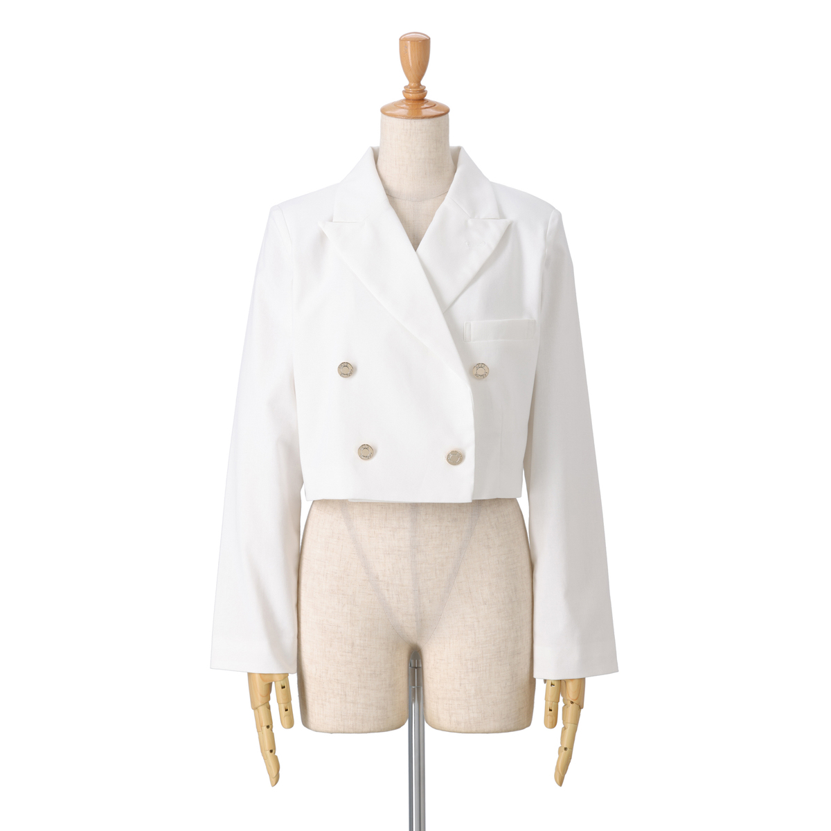 清涼感のある麻ミックス素材を使用した、トレンドのショートジャケット。ピークドラペルのダブルブレストで両袖下にはファスナーを施し、マニッシュな印象に仕上げました
