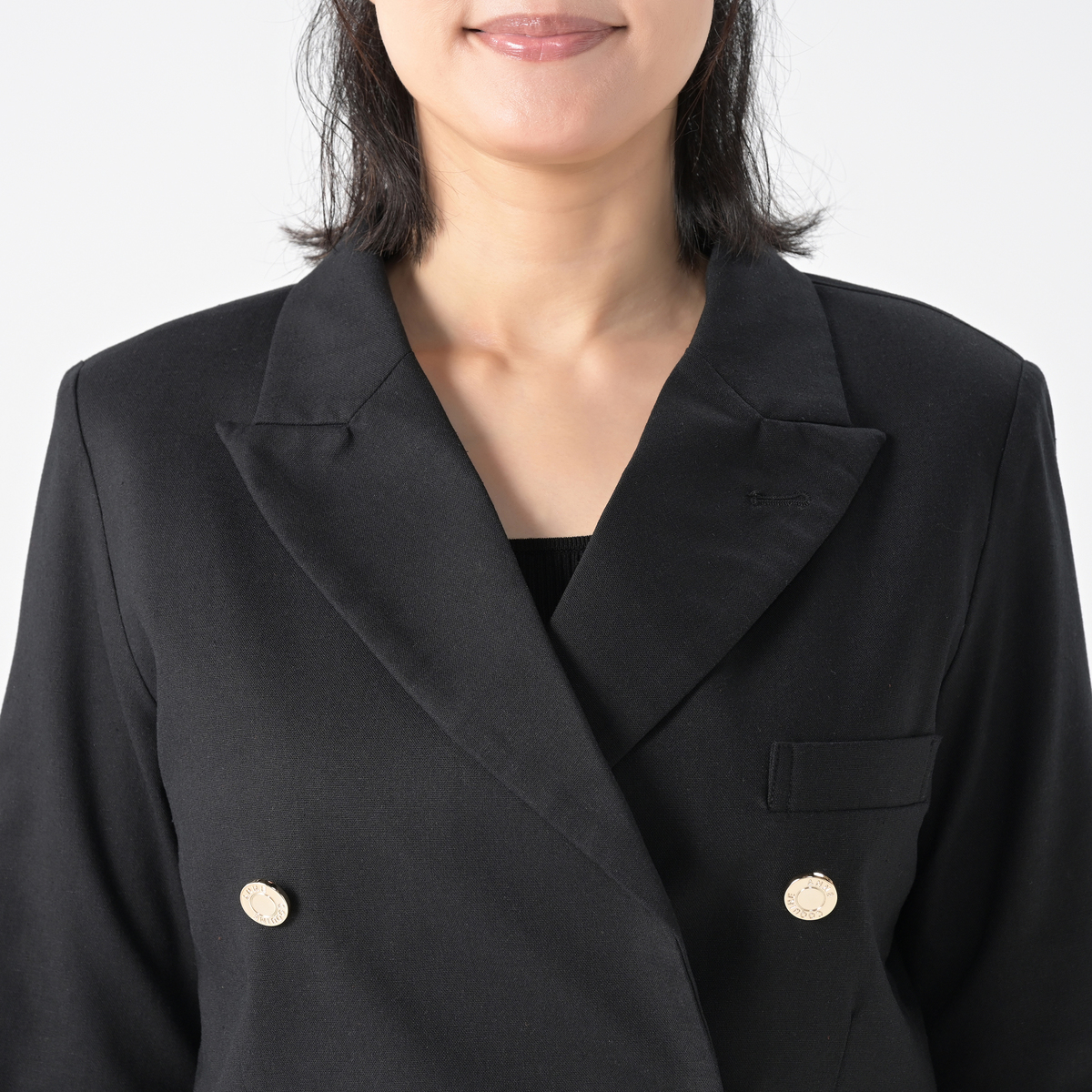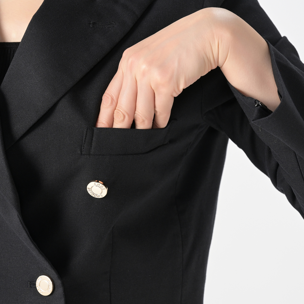 オリジナルの金色ボタンがアンコキーヌらしさをプラスしたデザインに。同素材のアイテムとのセットアップもおすすめです