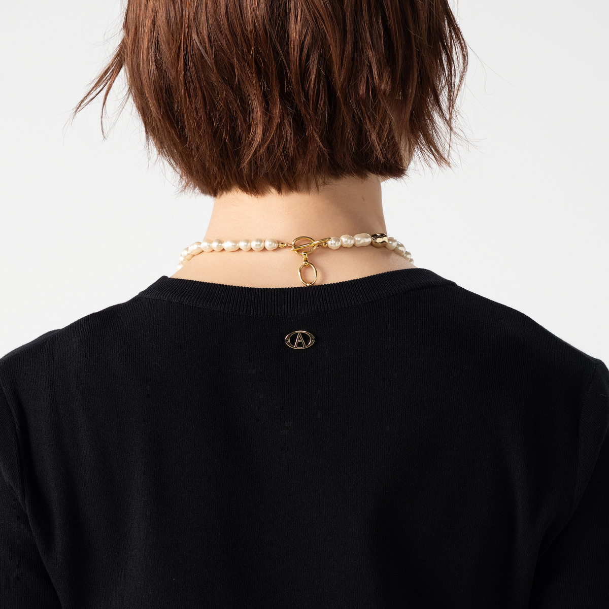 コアスパンヤーンを使った半袖のプルオーバーです。程よい丈感とフェミニンなシルエットで、装いに柔らかな印象をプラス。後ろ中心にあしらったオリジナルの金色パーツがさりげなく個性を添え、シンプルながらも着映えします