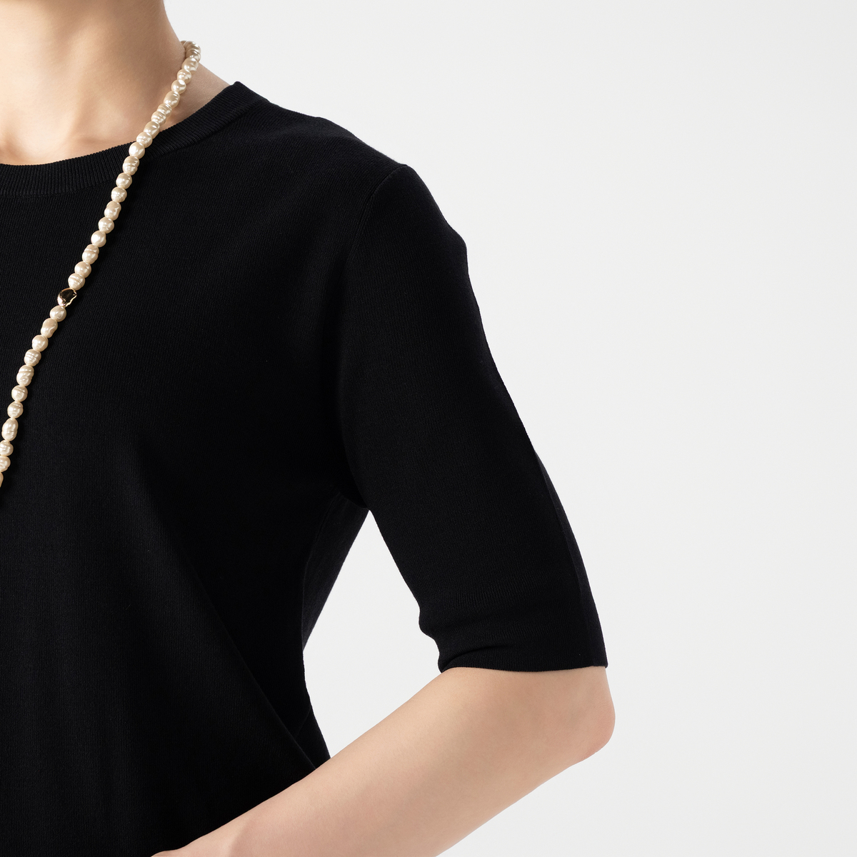 ニットなのに肉を拾わずすっきりなんです。さすがです。夏は着心地の悪いものは肌がかぶれそうで結局出番なしなんですが、肌当たりいいです。ブラックチュールスカートに合わせたいです。