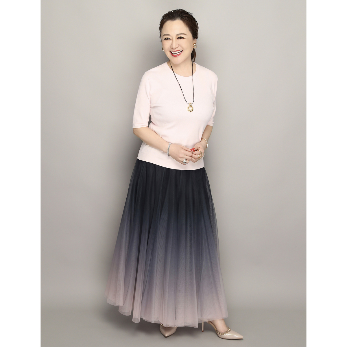 一緒に購入したチュールスカートに合わせてどちらかにしようか迷った挙句両方注文しました。さすがのコアスパンヤーンで絶妙な袖丈に感動です。スカートにもパンツにも合わせやすくて大人ピンクはとても素敵なお色です。どんどん着たいと思います。