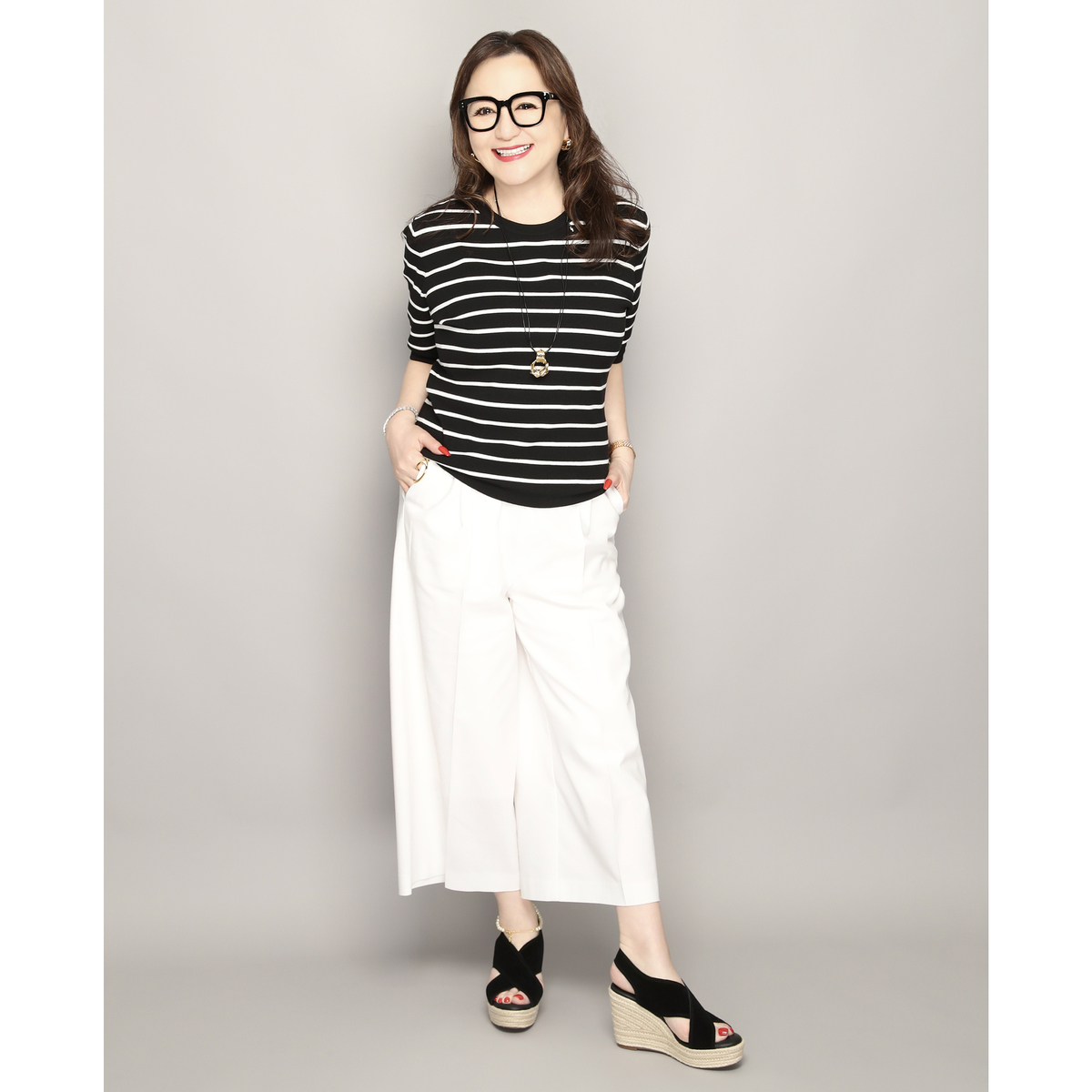 違う商品の紹介の時に藤島さんが実はこれ…とお話され、コーディネートもとても素敵だったのでついでに購入しました。 届いて着てみるとなんとも肌触りがよく、また着心地も抜群で、私はカラーと体形タイプから判断するとボーダーのクルーネック系はあまりしっくりこないのですがアクセサリーやボトム等で工夫すると、とても良かったです。 ピンクほしいと思いましたが、やはり売り切れでした。最初に興味なくても、アンコキーヌの商品は後から欲しくなったりするので、藤島さんがこれはいい!というものは買っといたほうがいいなと思いました。が、そうすると全部になっちゃいますね…。