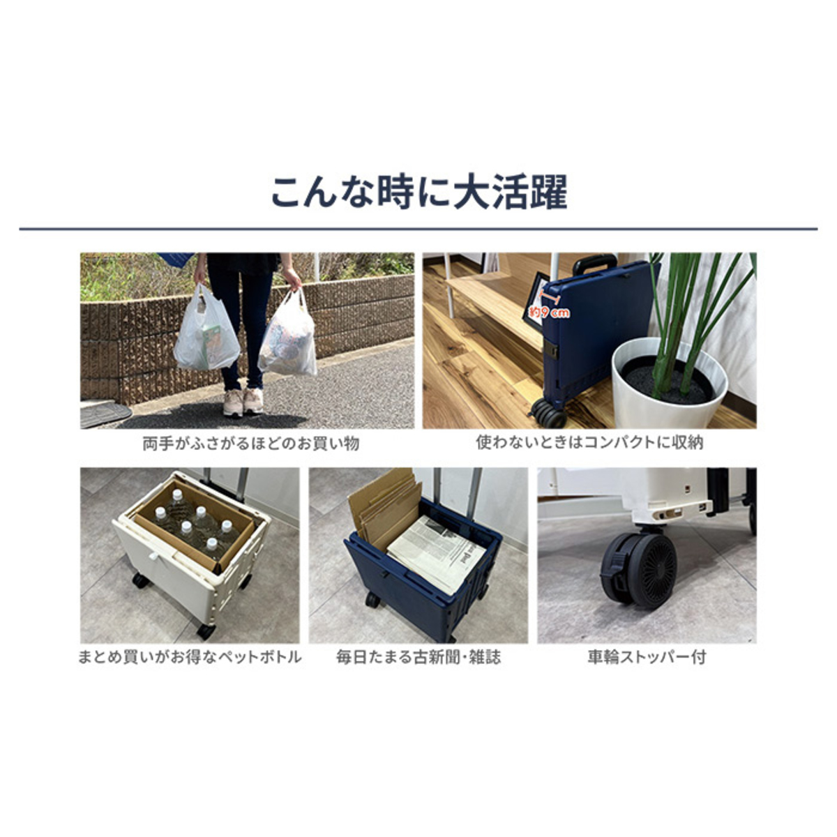 買い物やレジャー、ごみ出し、非常時の水タンクの運搬など、幅広い場面で活躍するコンテナキャリーです。便利なフタ付き(*1)。使わない時は折りたたんで収納でき(*2)、暮らしのさまざまなシーンをサポートします