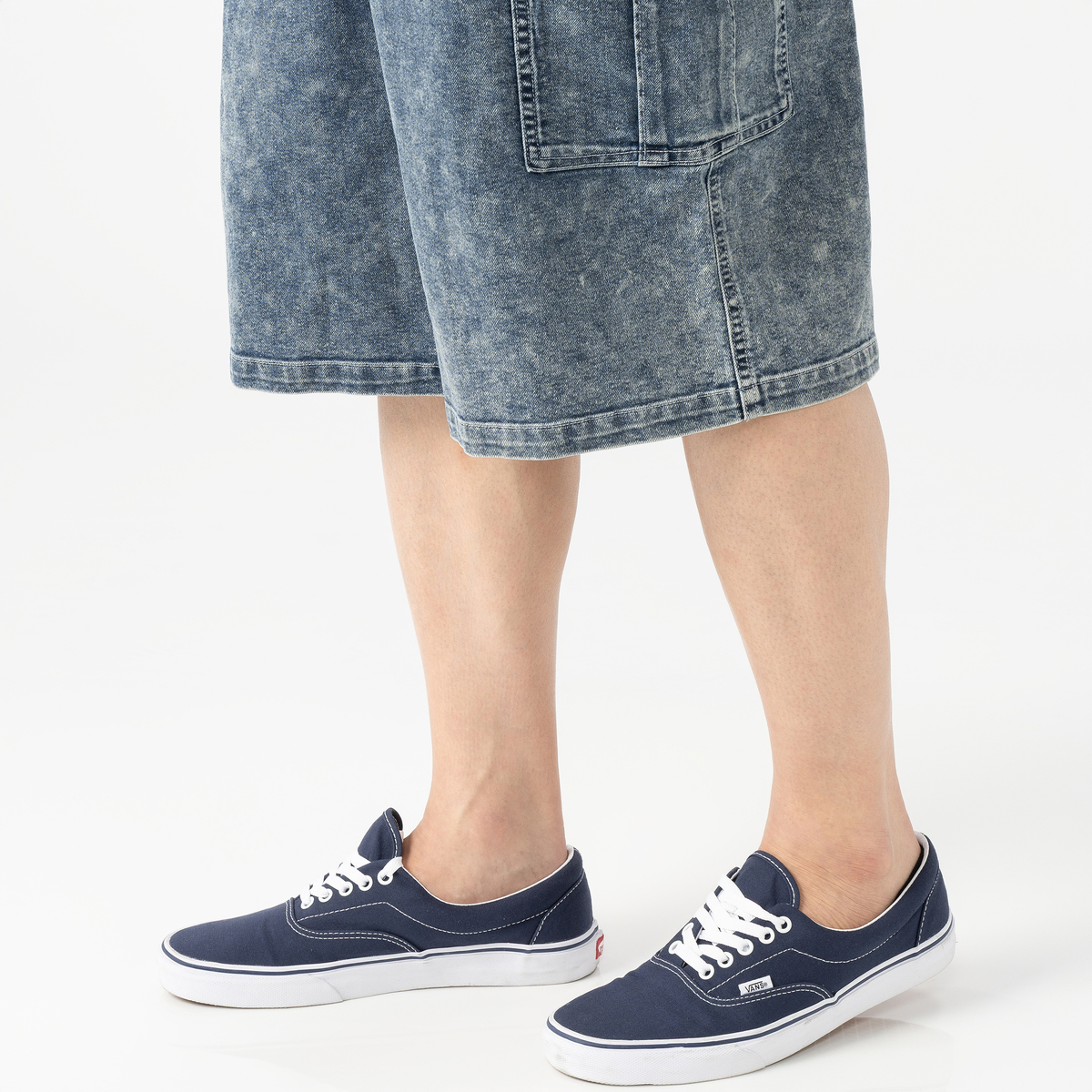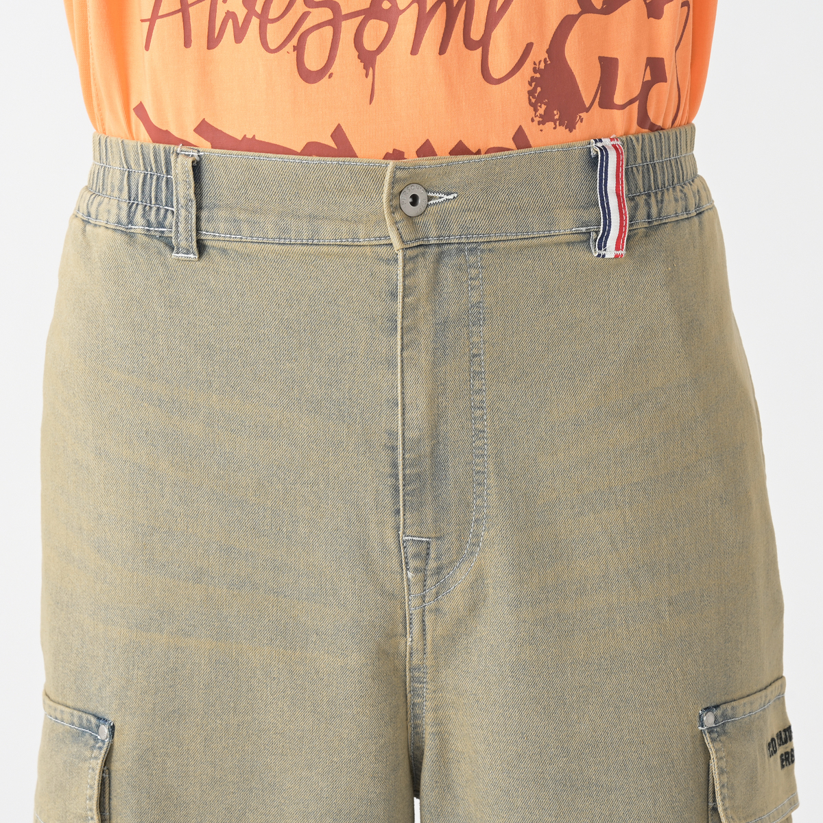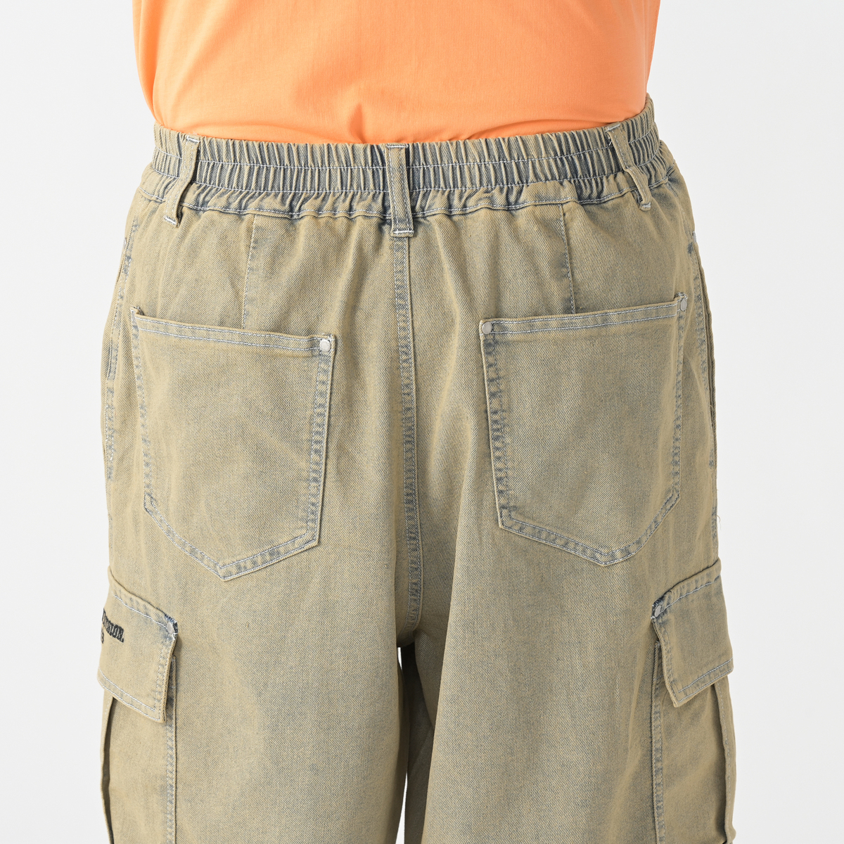 製品加工を施し、色と風合いにこだわったデニムハーフパンツです。薄手素材で暑い日も快適な穿き心地。立体的なカーゴポケットが、ボディラインをさりげなくカモフラージュします