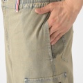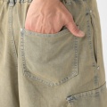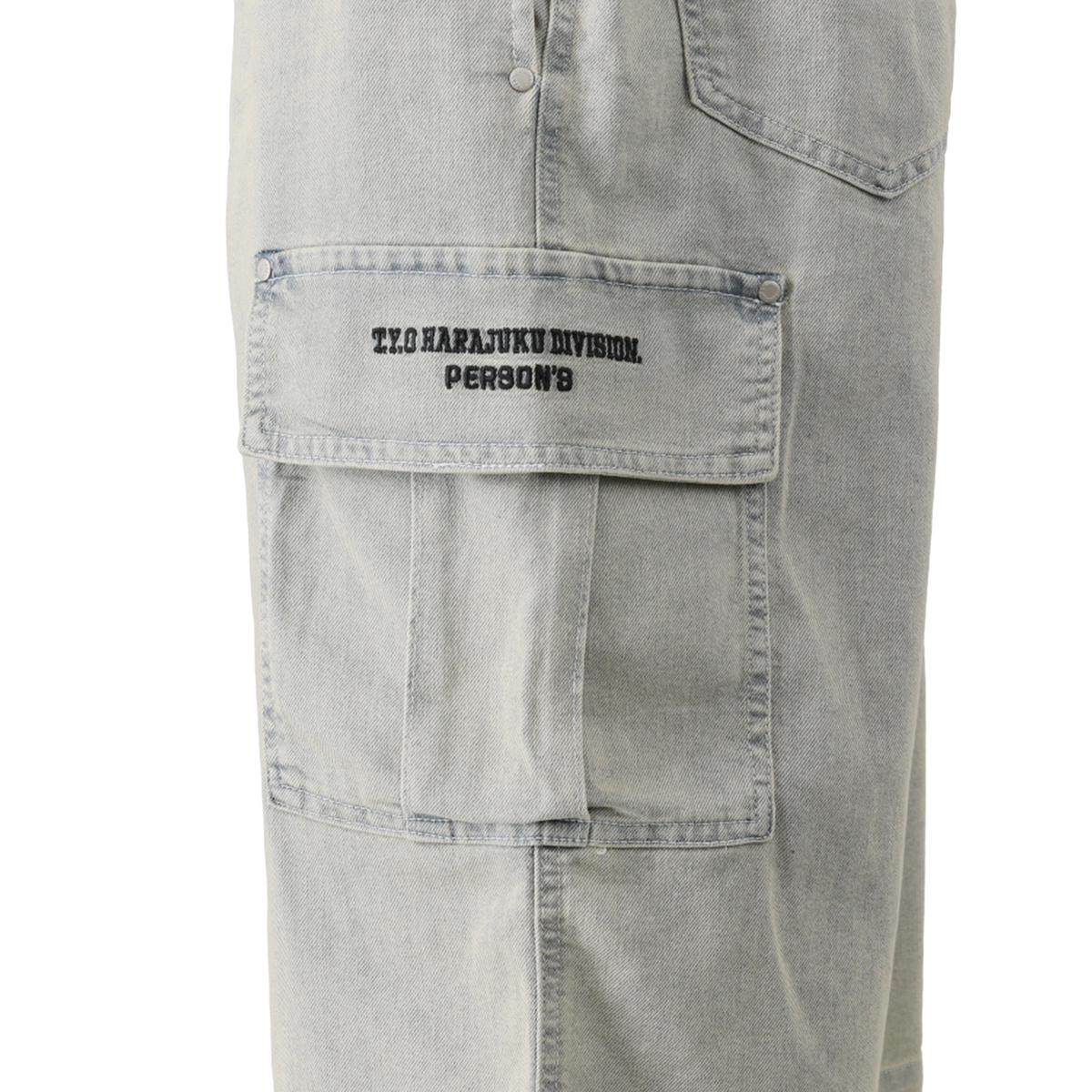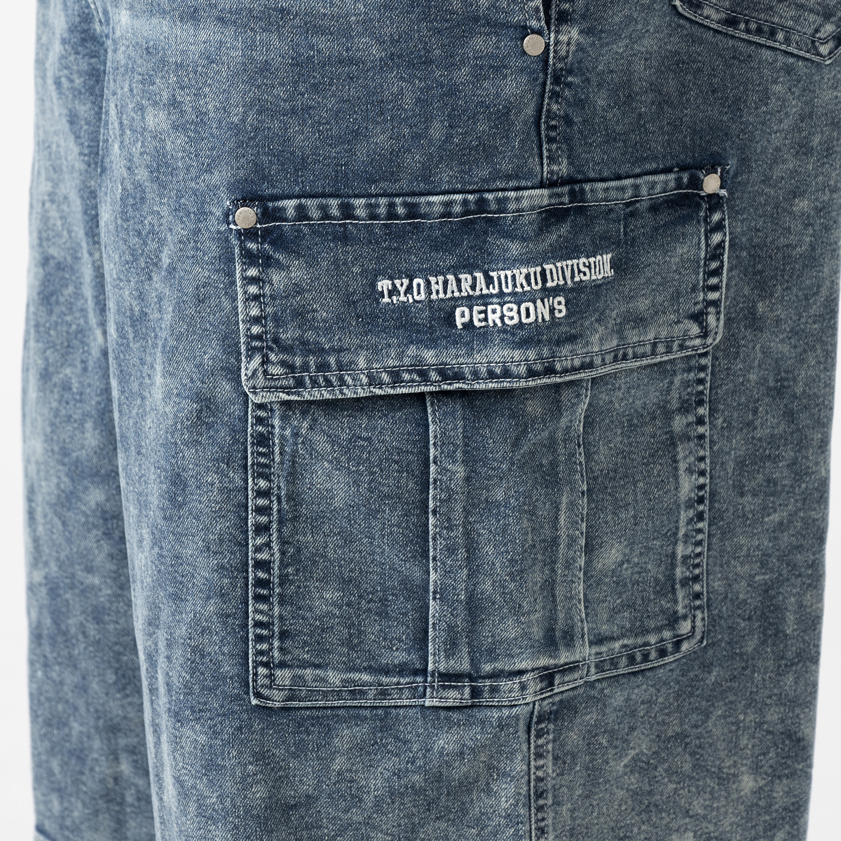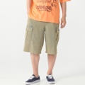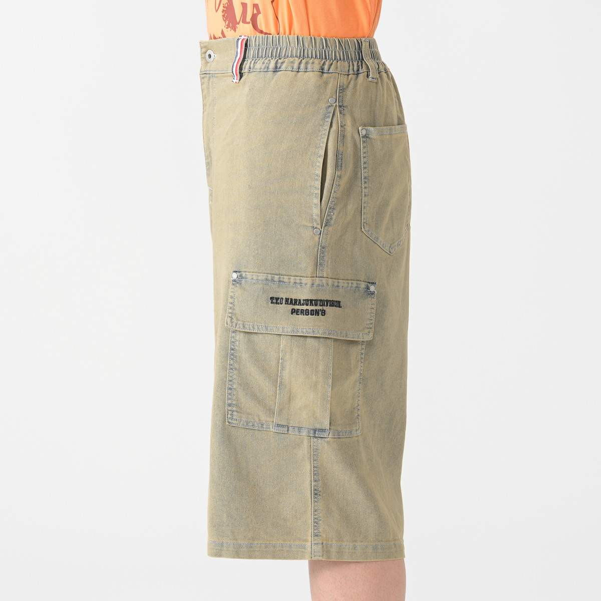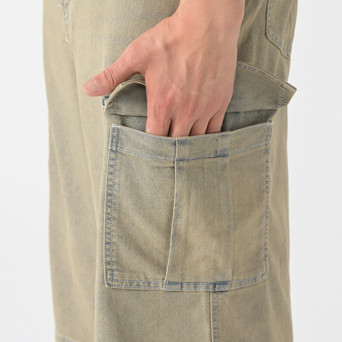 製品加工を施し、色と風合いにこだわったデニムハーフパンツです。薄手素材で暑い日も快適な穿き心地。立体的なカーゴポケットが、ボディラインをさりげなくカモフラージュします