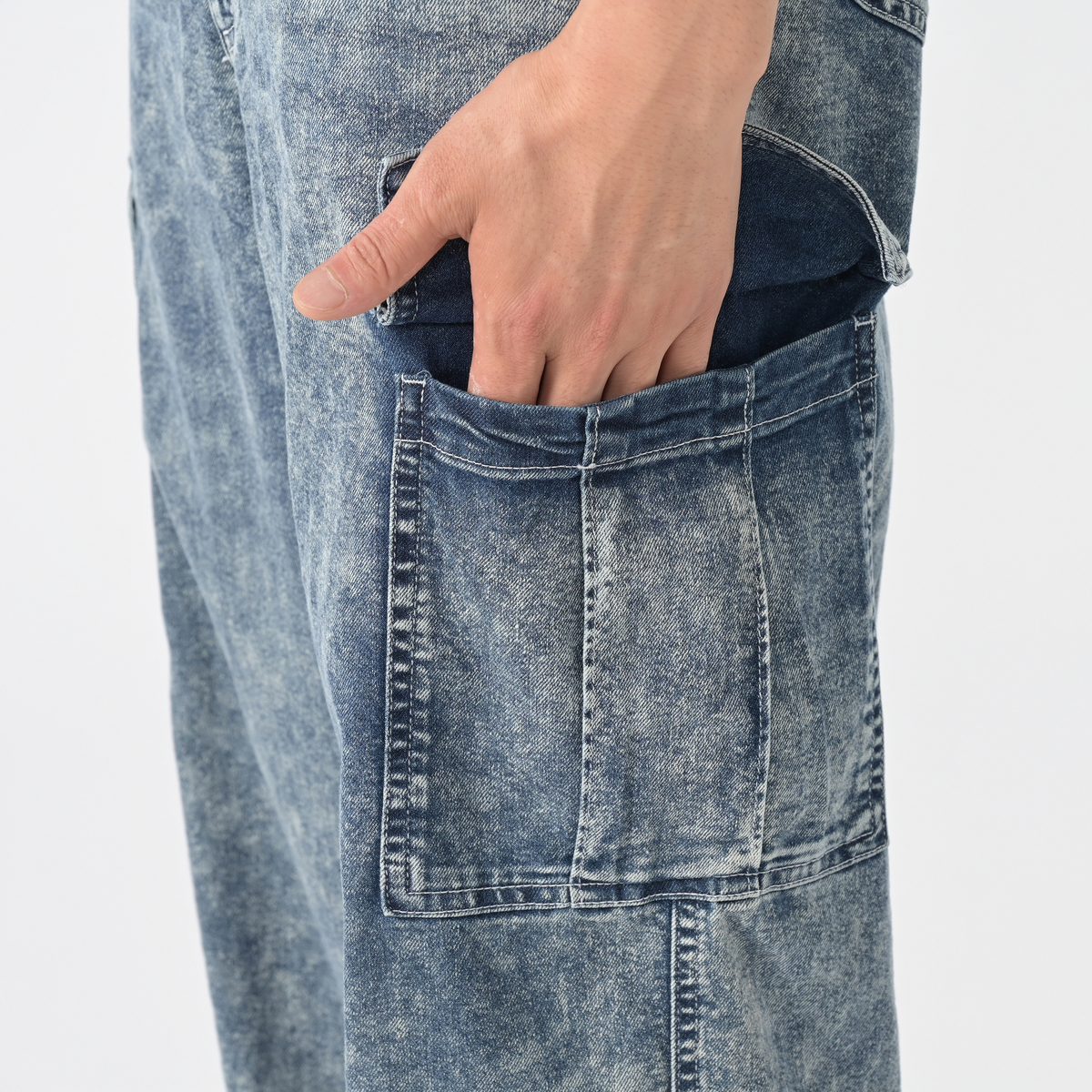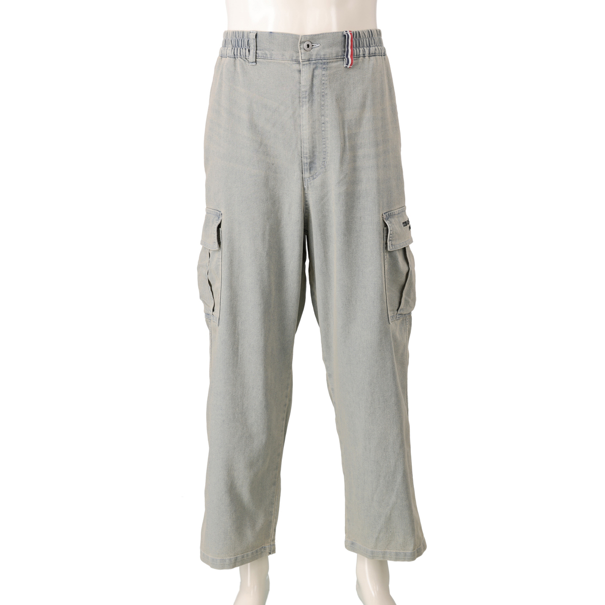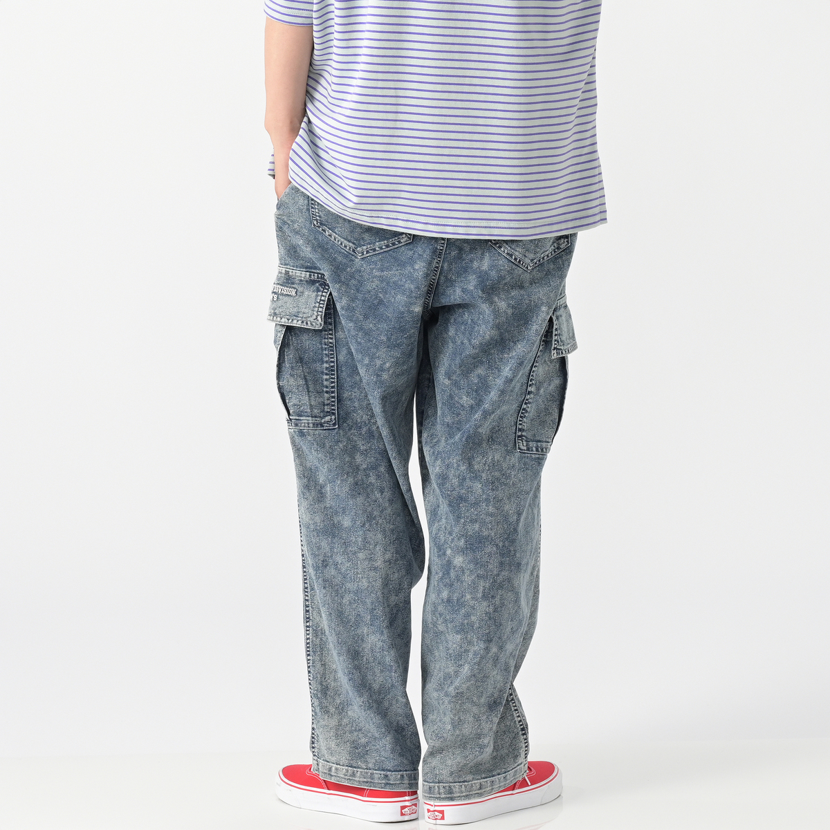 薄手のデニム素材で暑い季節も快適なカーゴパンツです。色合いや風合いにこだわった製品加工を施し、カジュアルな中にも個性が光ります。ストレートワイドなシルエットが若々しく、ゆったりしたサイズ感でダボっと穿くのがおすすめです