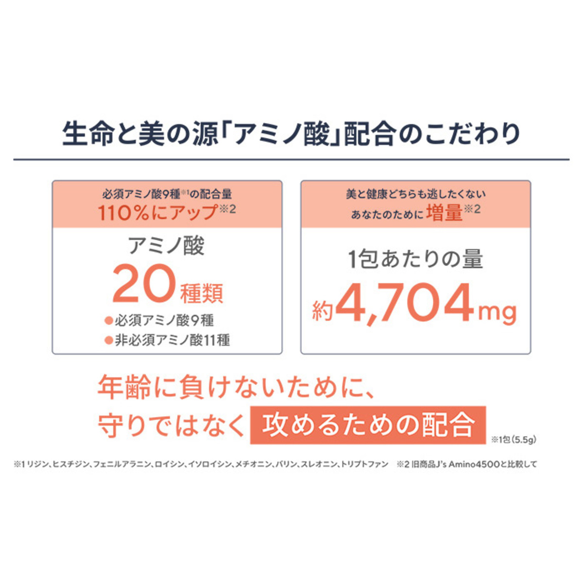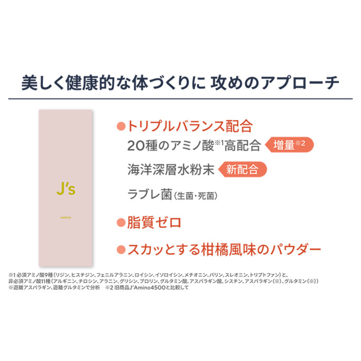J.ノリツグさんが監修した、全身美容と健康をサポートするサプリメント「J’s Amino 4700」。本品は必須アミノ酸全9種類を含むアミノ酸20種類を含有しています*