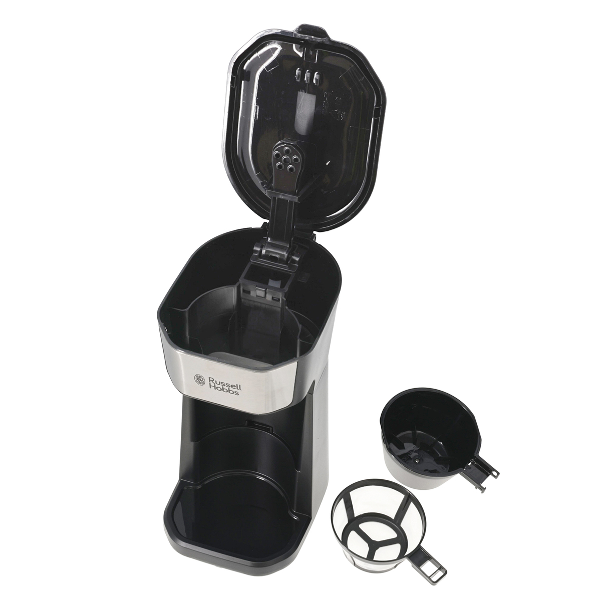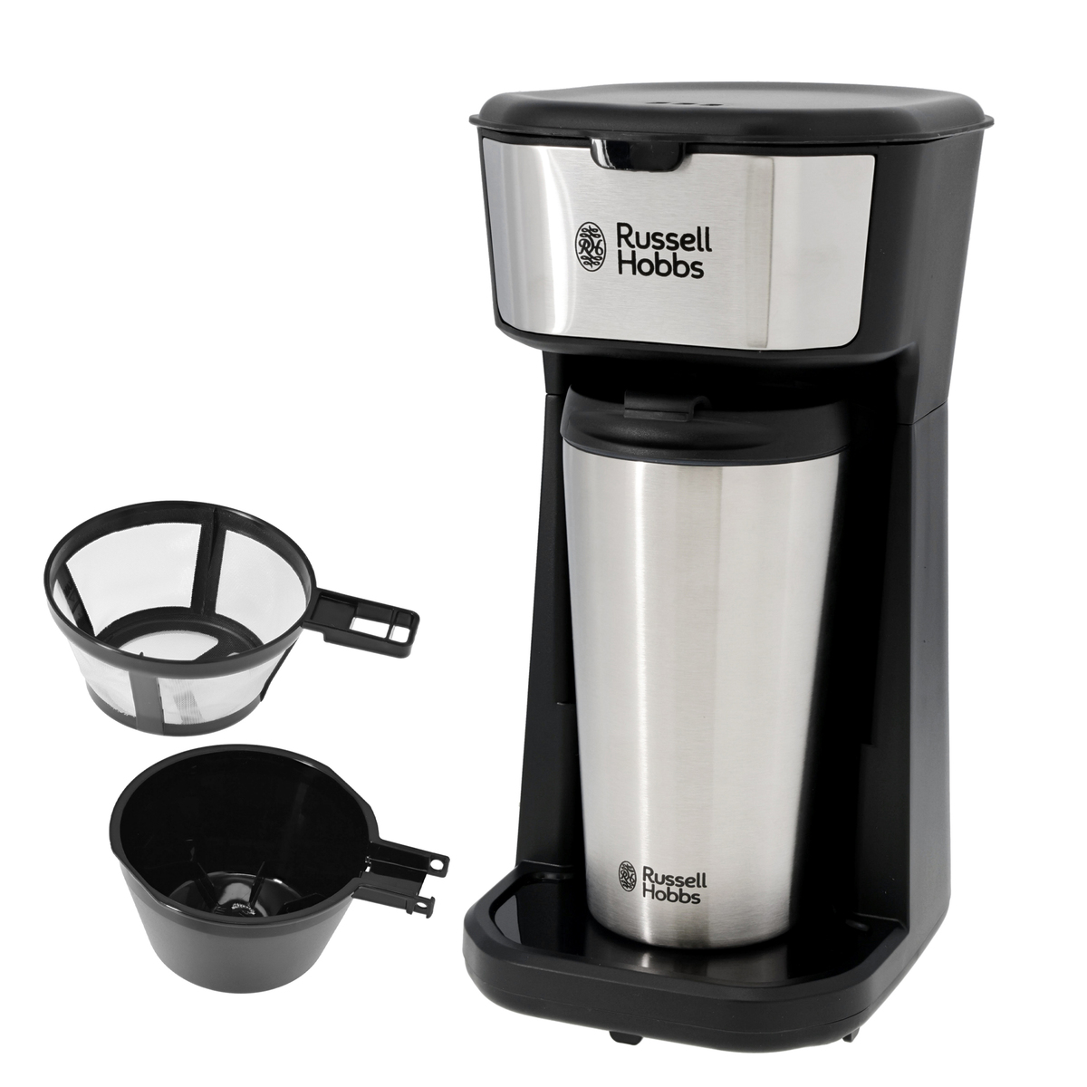 [商品内容] ・本体 ・タンブラー ・パーマネントフィルター ・フィルターホルダー [サイズ] 約幅13.0×奥行18.0×高さ26.0cm [重量] 約850g(タンブラー含む) [容量] 約400ml [材質] ステンレス、ポリプロピレン [コード長さ] 約0.8m [消費電力] 600W [使用方法] 初めてご使用になる時や長期間使わないで保管してあった場合は必ず洗浄運転を行って下さい 1、パーマネントフィルターにコーヒー粉を入れる(コーヒー粉を平らにならします) 2、本体にフィルターホルダーとパーマネントフィルターをセットする(本体のカバーを開け本体のスロットに合わせてセットします) 3、ウォータータンクに水を入れる(タンクMAXゲージ400mlまで水を入れ、トップカバーを閉めます) 4、タンブラーをセットする(タンブラーを本体の中央へセットします) 5、電源スイッチを入れ、抽出を開始する(電源プラグをコンセントに差し込み、電源スイッチを押すとランプが点灯し抽出が始まります) 6、抽出が完了したら電源を切る(コーヒーが落ちてこないことを確認したら電源スイッチを押し電源を切ります) 7、コンセントから電源プラグを抜く 8、コーヒーを飲む(タンブラーを取り出し、蓋をしっかり締めてお召し上がり下さい) [お手入れ] 1、フィルターホルダーをセットします。パーマネントフィルター、コーヒー粉はセットしないで下さい 2、ウォータータンクのMAX ゲージまで水を入れます 3、タンブラーをセットします 4、電源プラグをコンセントに差し込み、電源スイッチを入れ、お湯を抽出します 5、抽出が終了しランプ消灯後、電源プラグをコンセントから抜いて下さい。抽出されたお湯は捨てて下さい ・本体は水で湿らせてよく絞った柔らかい布で拭いて下さい ・パーマネントフィルター、フィルターホルダー、タンブラー、フタ、蓋ゴムシールは食器用中性洗剤を使用して柔らかいスポンジで水洗いして下さい。洗浄後は乾いた柔らかい布で水分を拭き取って乾燥させて下さい ■取り扱い説明を充分にご確認の上、ご使用下さい 【中国製】 [注意事項] ※使用不可:食器洗い機 ※24g以上のコーヒー粉を入れないで下さい ※細挽きやエスプレッソのような細かい粉は使用しないで下さい。目詰まりによりコーヒーがあふれ、やけどや故障の原因となります ※パーマネントフィルターをセットする際に、コーヒー粉がウォータータンクに入らないように注意して下さい。故障の原因となります ※注水の際にMAXゲージ(400ml)以上に水を入れないで下さい ※専用タンブラーを使用して下さい ※タンブラーにフタをした状態でセットしないで下さい。コーヒーがあふれ、やけどの原因となります ※抽出終了後もコーヒーが少し出ますので、タンブラーをすぐに取り出さないで下さい ※連続してご使用になる場合は、10分以上本体を冷ましてからご使用下さい ※抽出終了後もコーヒーが少し出ますので、様子を見てタンブラーを取り出して下さい ※タンブラーのフタに、フタゴムシールを必ず装着して下さい。正しく装着しないと液漏れの原因となります ※タンブラーのフタは本体を完全に密閉するものではありません。横にするとコーヒーがこぼれますので、持ち運ぶ際はご注意下さい ※アイスコーヒーを作る場合は目安の分量より多く入れないで下さい。分量以下でお好みに合わせて調整して下さい ※細挽きやエスプレッソのような細かい粉は使用しないで下さい。目詰まりによりコーヒーがあふれ、やけどや故障の原因となります ※必ず電源プラグを抜き、本体が完全に冷めてからお手入れをして下さい(やけどの原因) ※抽出後のコーヒーの粉は、使用後に捨てて下さい(故障の原因) ※お手入れの際、本体を水に浸けたり丸洗いなど絶対にしないで下さい(ショート・感電・故障の原因) ※本体やプレートの拭き取りに、ベンジン・シンナー・磨き粉・タワシなどは使用しないで下さい(傷・変形・変色・故障の原因) ※食器洗浄機や食器乾燥機は使用しないで下さい(故障の原因)