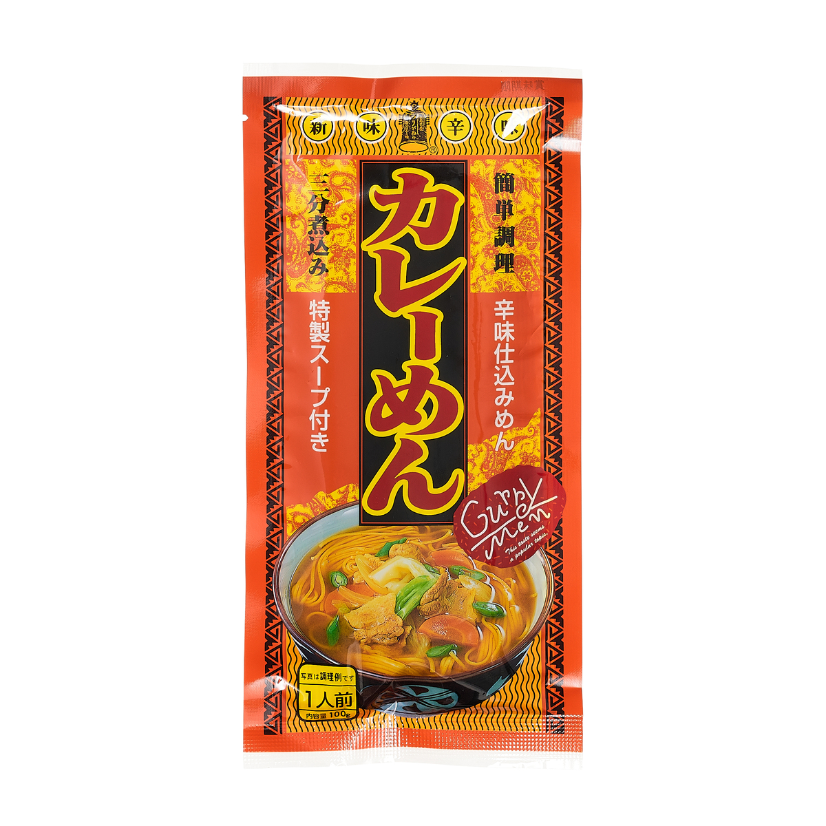 [アレルギー物質特定原材料8品目] 小麦 [内容量] 100g(めん92g、添付調味料8g)×20袋 [賞味期限] 出荷時点で賞味期限まで110日以上ある商品をお届けします [保存方法] 開封前:直射日光、湿気を避けて保存してください 開封後:開封後はお早めにお召し上がりください [お召し上がり方] 1.鍋に油を熱し、キャベツ、人参少々、ハム、または肉30gをサッと炒めます(または、じゃがいものうす切りや玉ねぎ等) 2.1の鍋に水コップ3杯(500〜600ml)を入れ、沸騰させてください(水の量は具の量に応じて調整して下さい) 3.沸騰した所にカレーめんをパラパラ入れ、かきまぜ3分位煮てください。最後にカレースープを入れて出来上がり ※野菜等を油で炒めず直接煮込んでもスープに野菜の甘味が溶け込みおいしく召し上がれます ※熱湯によるやけどには、十分ご注意ください [注意事項] ※麺の黒や茶の点はカレー粉のスパイスによるものですので品質に問題はございません。安心してお召し上がりください [原料原産地] めん[小麦粉(国内製造)] [原産国] 日本 [原材料] めん[小麦粉(国内製造)、食塩、カレー粉] 添付調味料[食塩、カレー粉、砂糖、粉末醤油、でんぷん、粉末酒、たん白加水分解物、かつお節粉末、オニオン、ガーリック、こんぶ粉末、ごま油/調味料(アミノ酸等)、カラメル色素、増粘剤(キサンタンガム)、酸味料、香料、(一部に小麦・大豆・ごまを含む)]