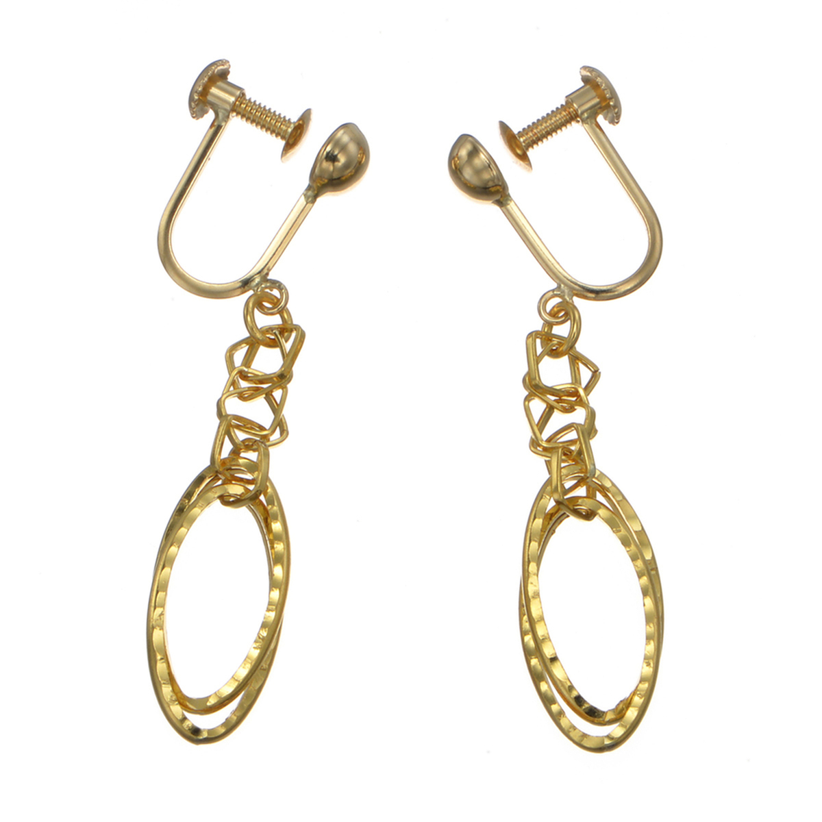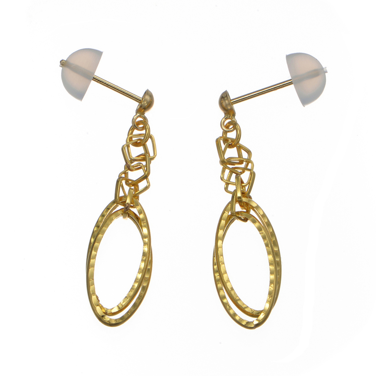 スクエアとオーバルモチーフを組合せたイヤリングまたはピアス。中空技術を駆使したホロー商品で、贅沢なボリューム感がありながら、着用時の軽やかさが魅力です