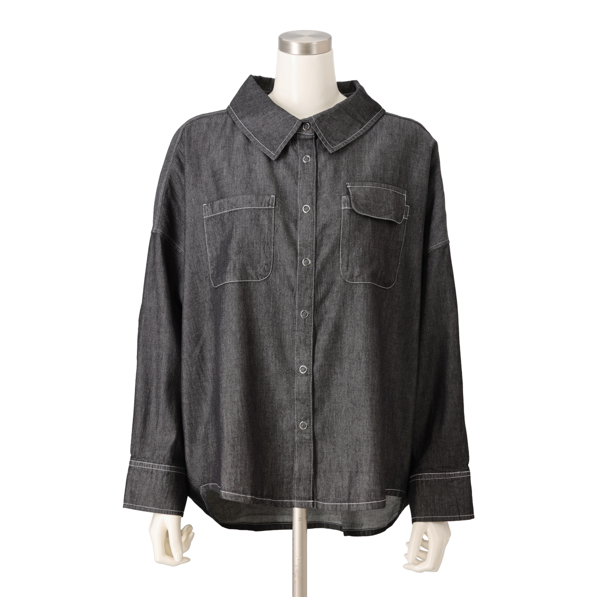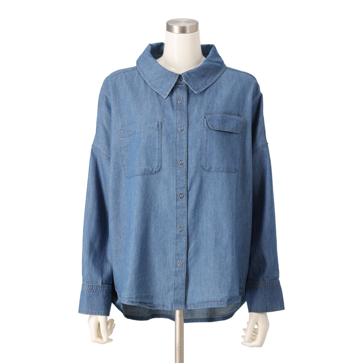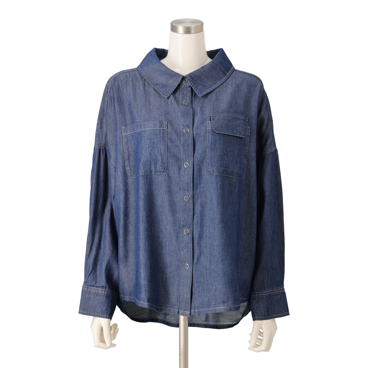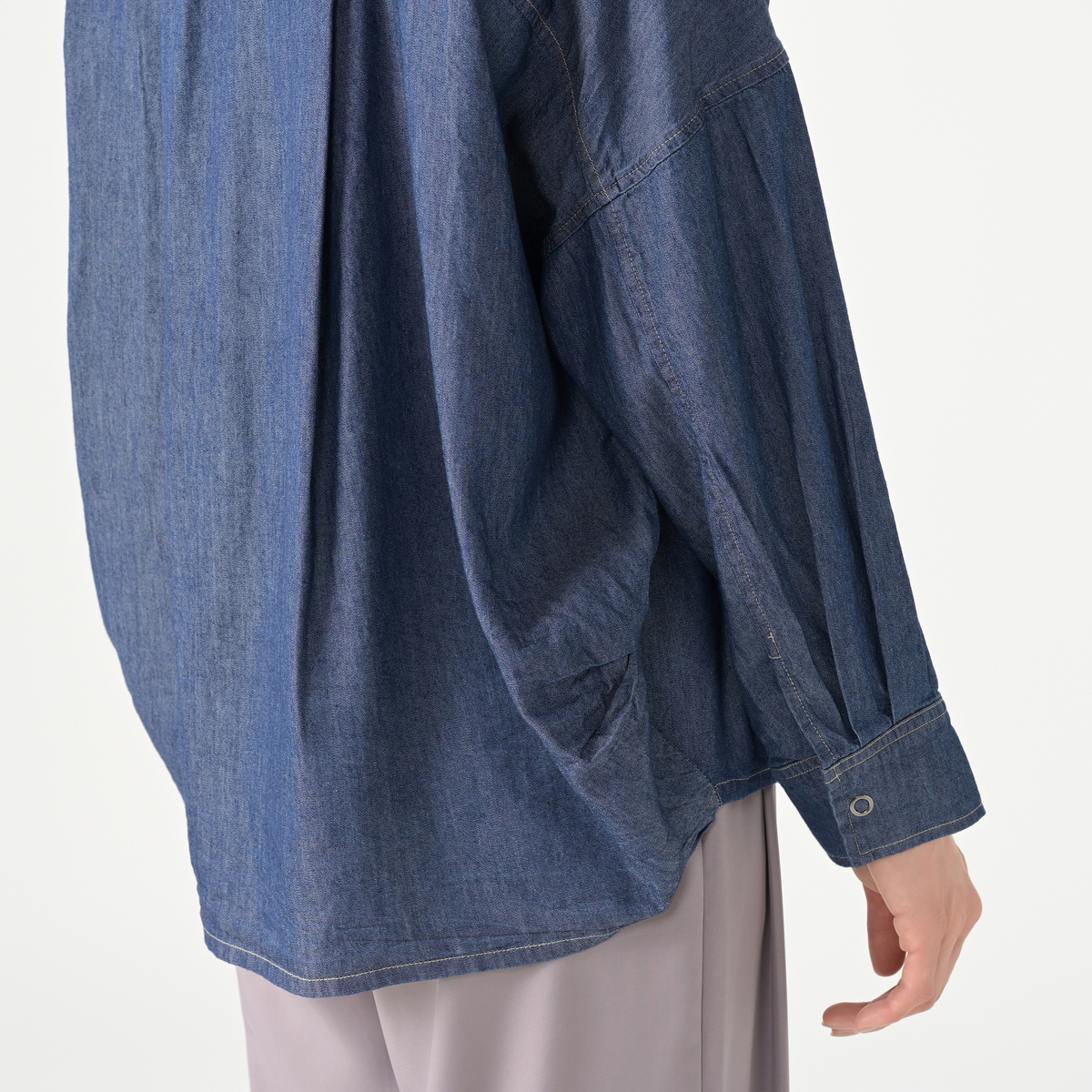 オーバーサイズに憧れて、でも身幅があるのでワンサイズ下を購入。柔らかい素材なので通常サイズでも良かったかも知れません。 軽く着やすいとは思いましたが、羽織として前を開けると広めの襟元が上手く決まりませんでした。前ボタンをいくつか留めればサマになるかもしれません。 素材的にシワも許容範囲かは微妙なところ。デニムぽい雰囲気は気楽にサッと羽織れるイメージだったので、ちょっと思った感じと違う気もします。