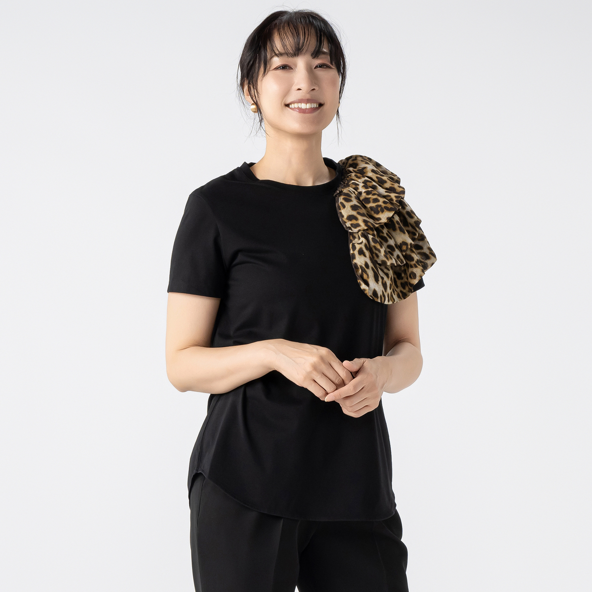 No. 744522 ANGELOS アシンメトリーフリル付き半袖Tシャツ