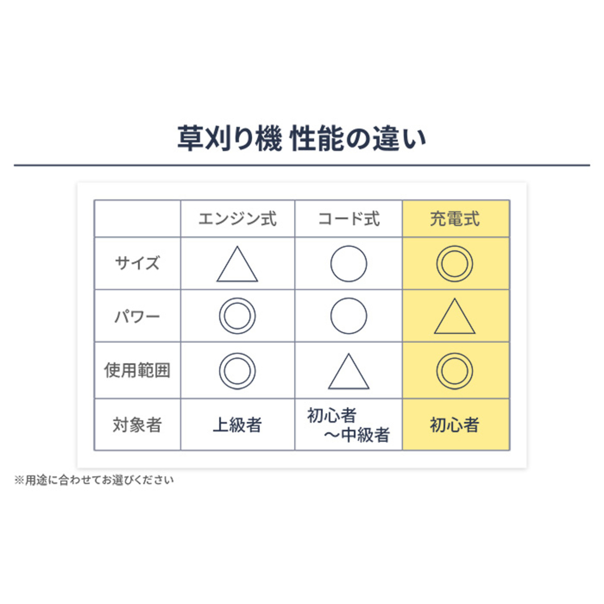 *1)目安として10〜15cm程度の長さの芝生や柔らかい草の刈り込みに使用できます