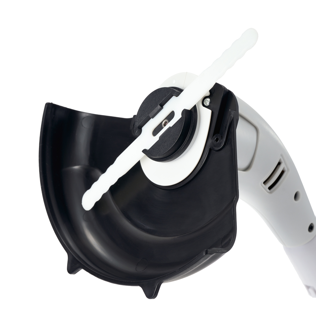 スイッチの引金は、安全ロックボタンを押したまま引かないと作動しない仕様。両刃形状のため、ブレードが磨耗したら裏返して使用できます