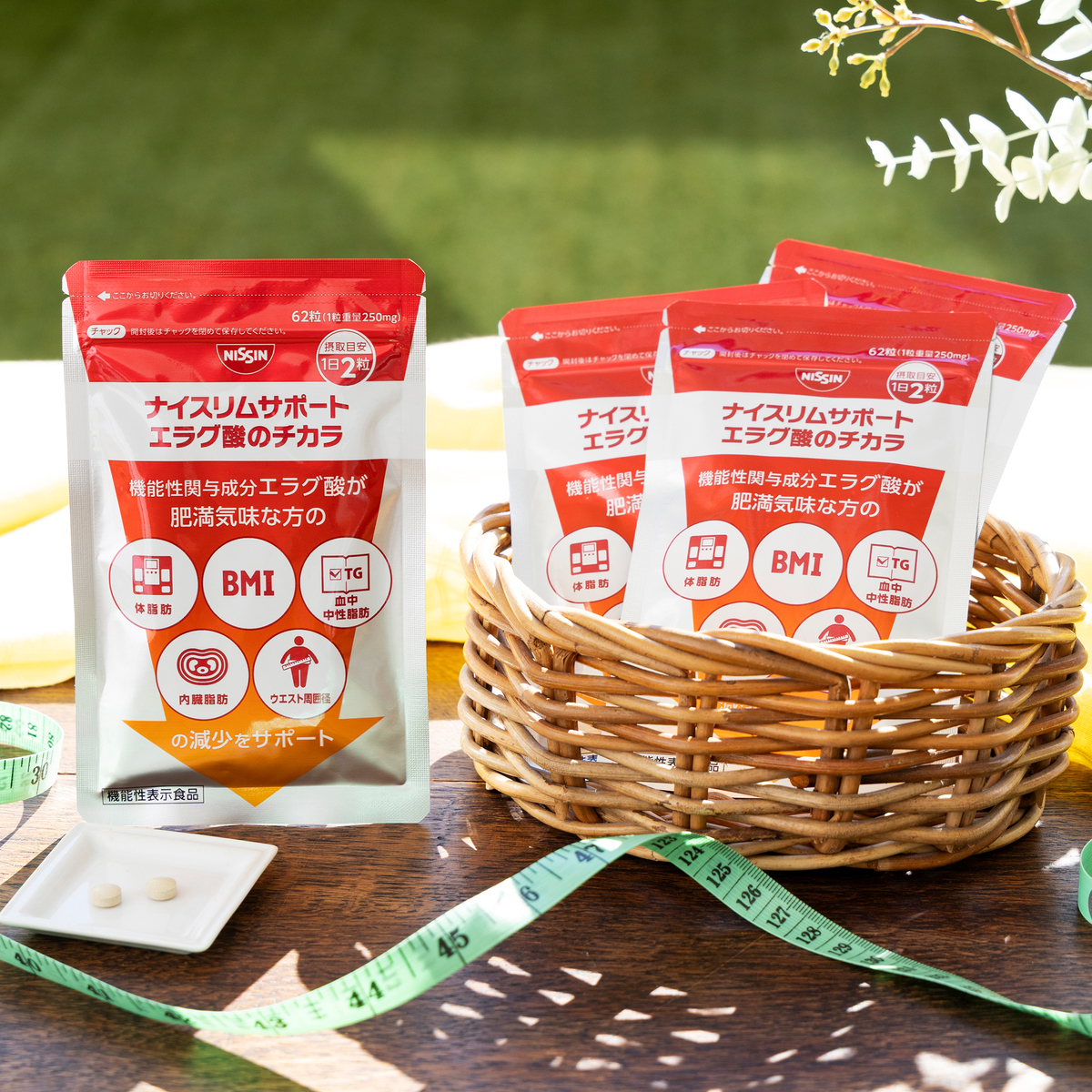 中性脂肪、内臓脂肪、ウエスト周囲にというものは他社からも出ていますがNISSINのエラグ酸ならばと購入しました。エラグ酸の効果に期待しています。