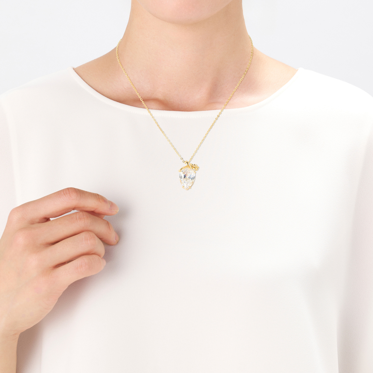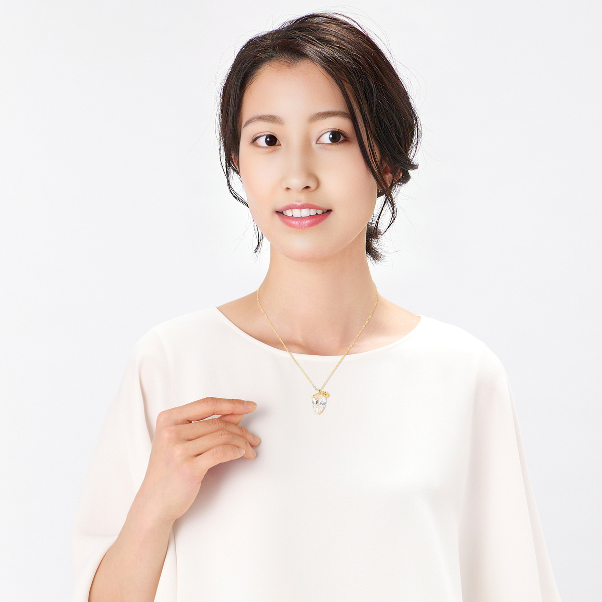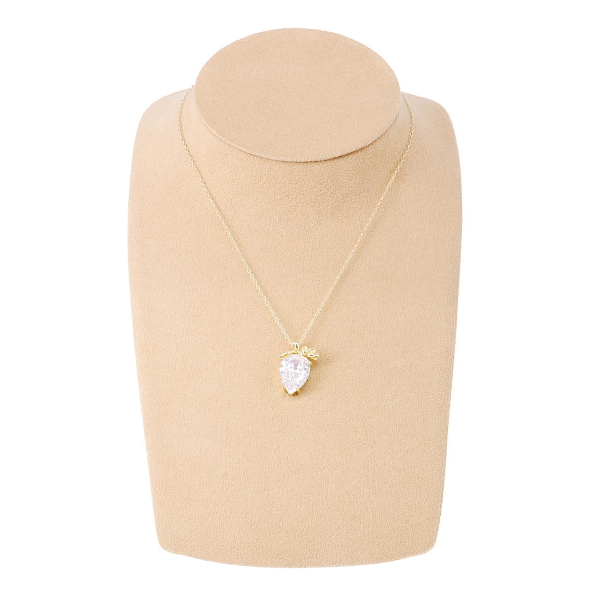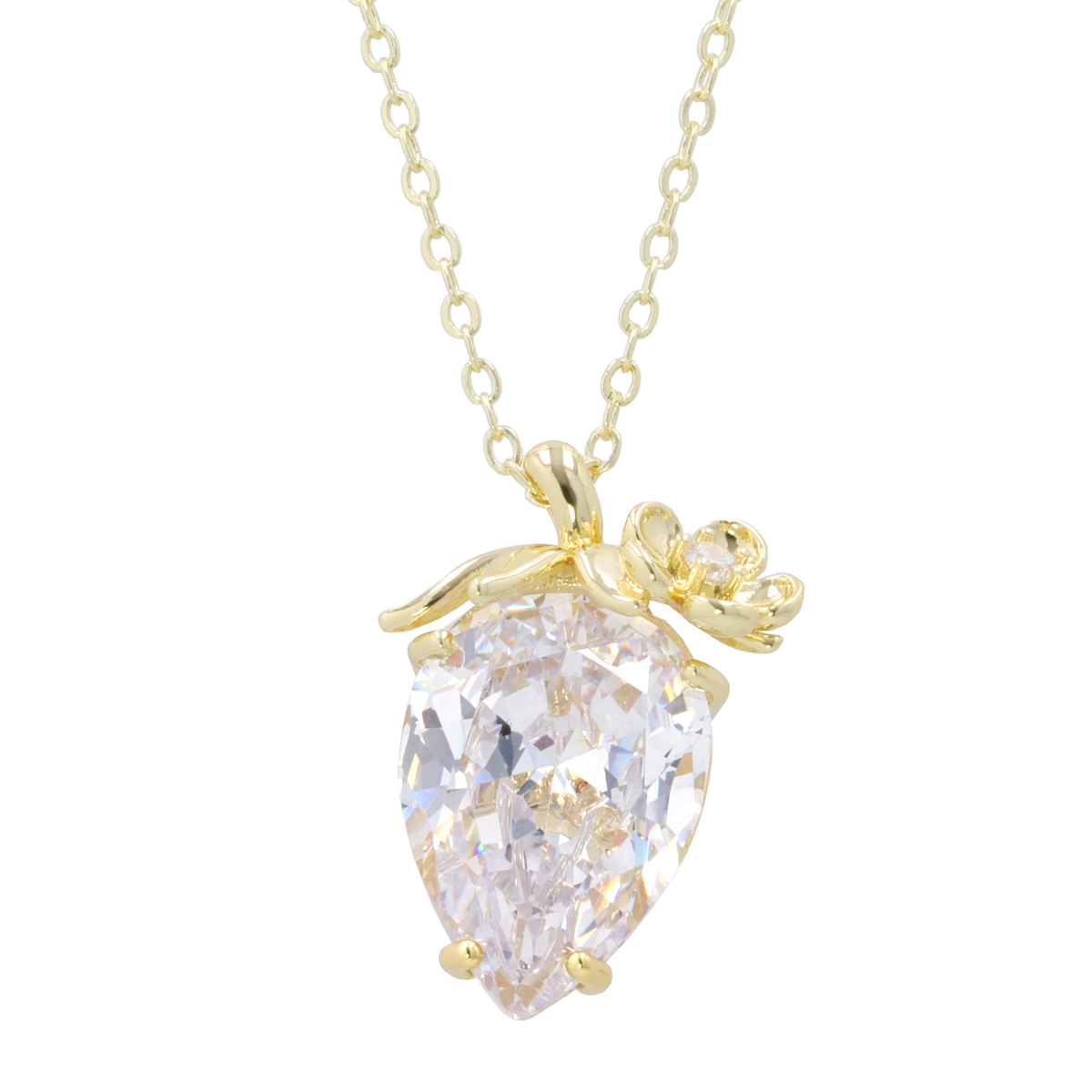 キュービックジルコニアをセットした、ストロベリーモチーフのネックレス。光を受けてキラキラと輝きながら胸元を彩り、日常のコーディネートに遊び心と上品さをプラスしてくれます