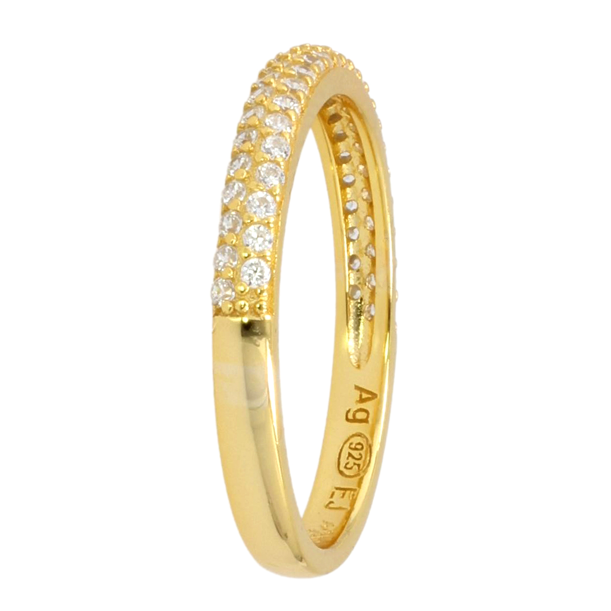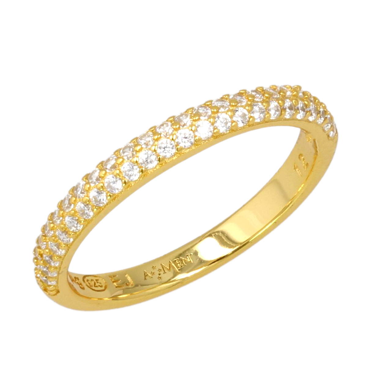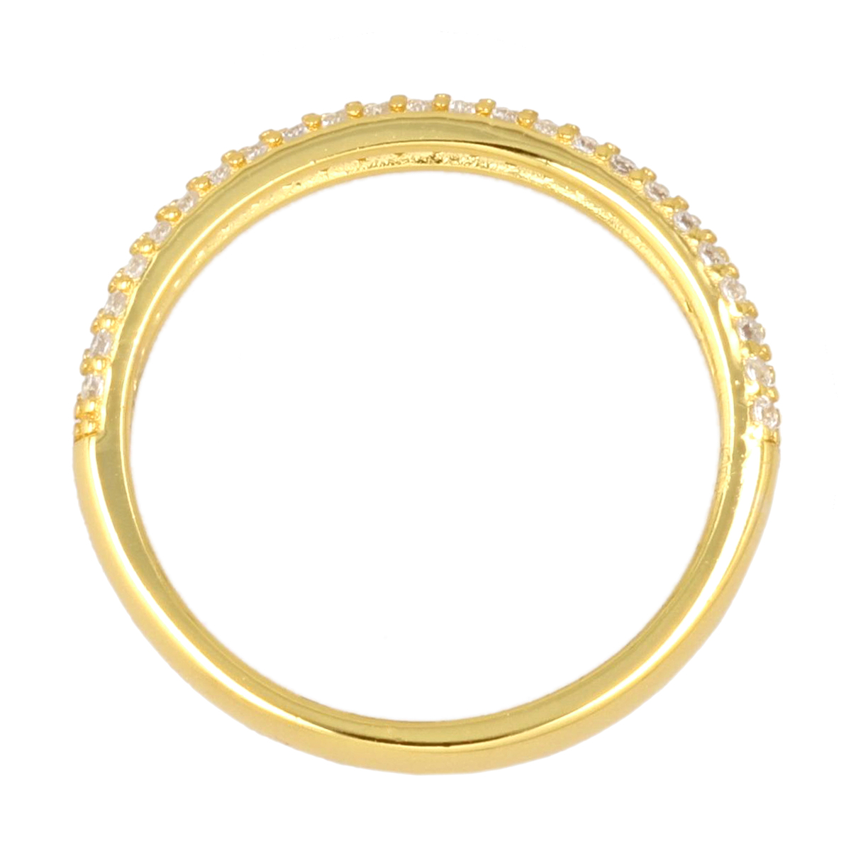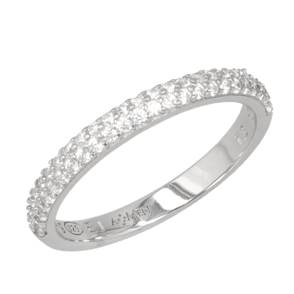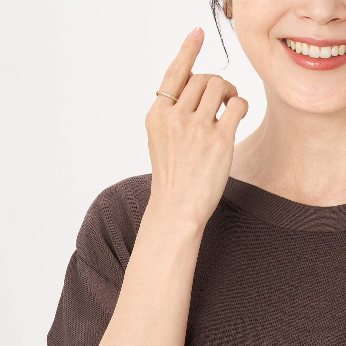 2列のキュービックジルコニアがきらめきを添えるリング。落ち着いた雰囲気や上品さを漂わせ、毎日の装いに華やぎをプラスします