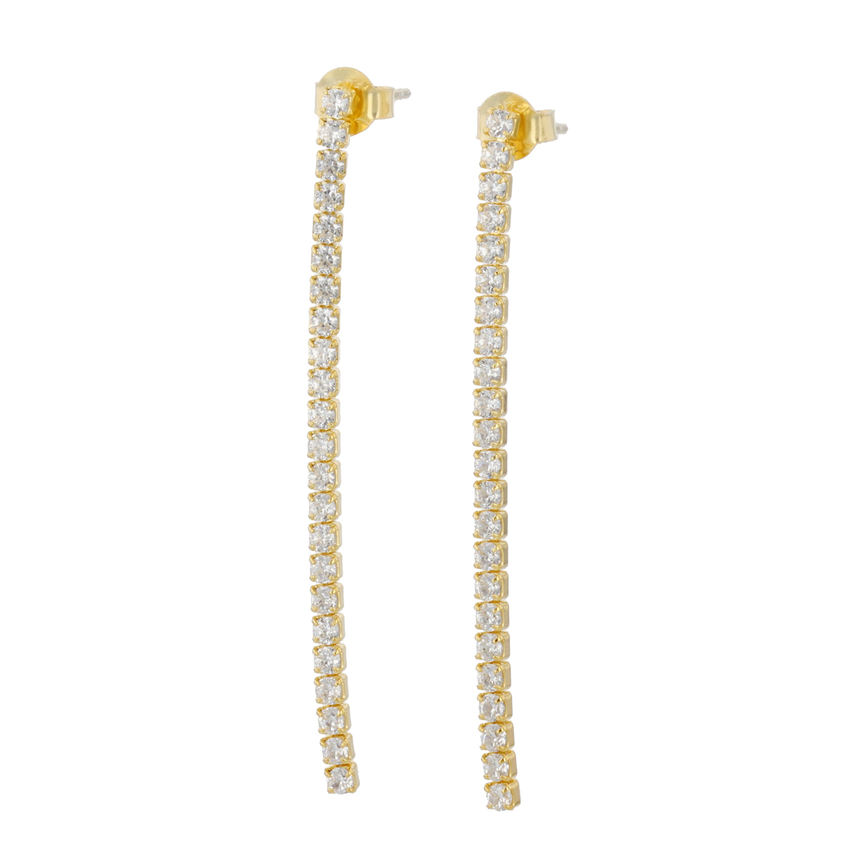 シックな装いにも映えるラインピアス。華やかな輝きを生み出すエレガントなセッティングが特徴です