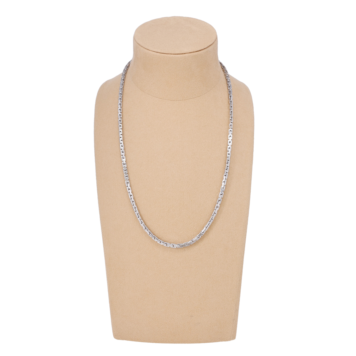 しっかりとした太めのチェーンが首もとに存在感をもたらすネックレス。エレガントなインターロッキングデザインが、シンプルな装いにも品の良いアクセントを加えます