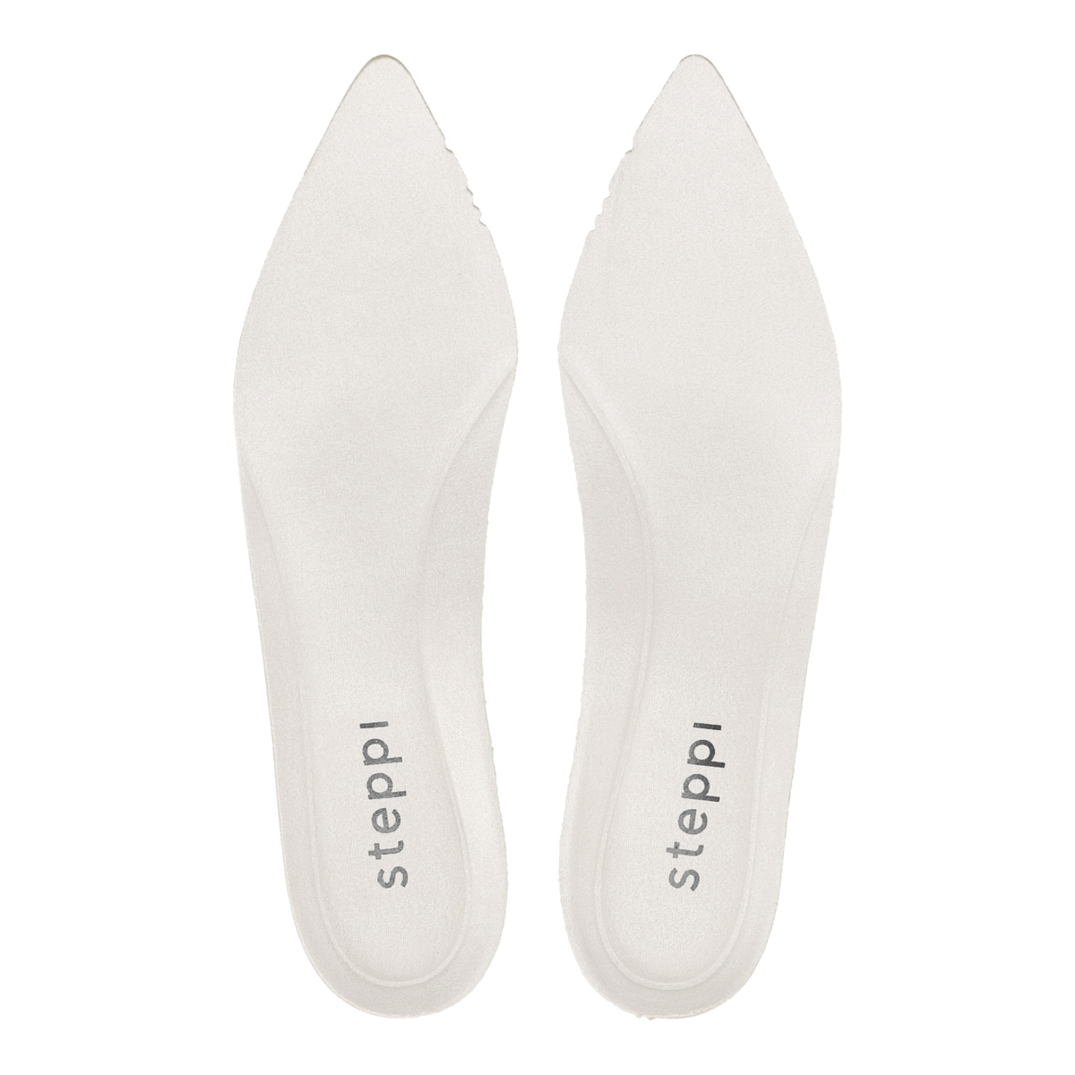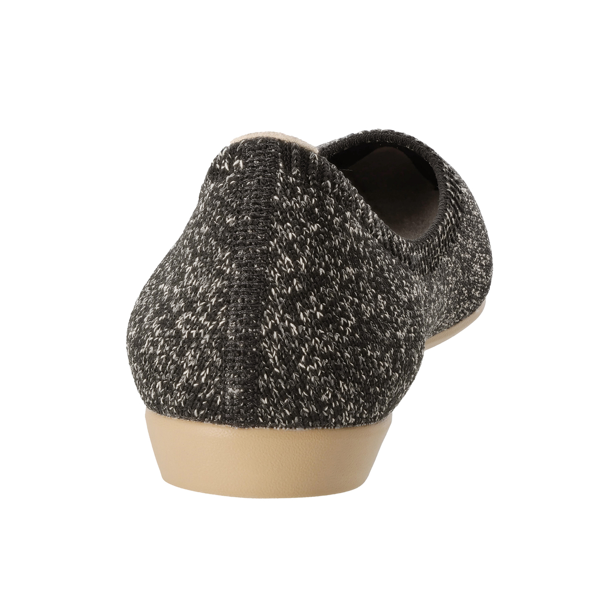一枚仕立てのニットアッパーと発泡素材のアウトソールを使用。ポリエステルヤーンでしなやかに編みたてることで、裏材や芯材を使用せずに構成しています。中敷きは、まるでスニーカーを履いているようにふんわりとした足入れ感。アウトソールは軽くてクッション性があり、パンプスのきちんと感もある絶妙なバランスにしています