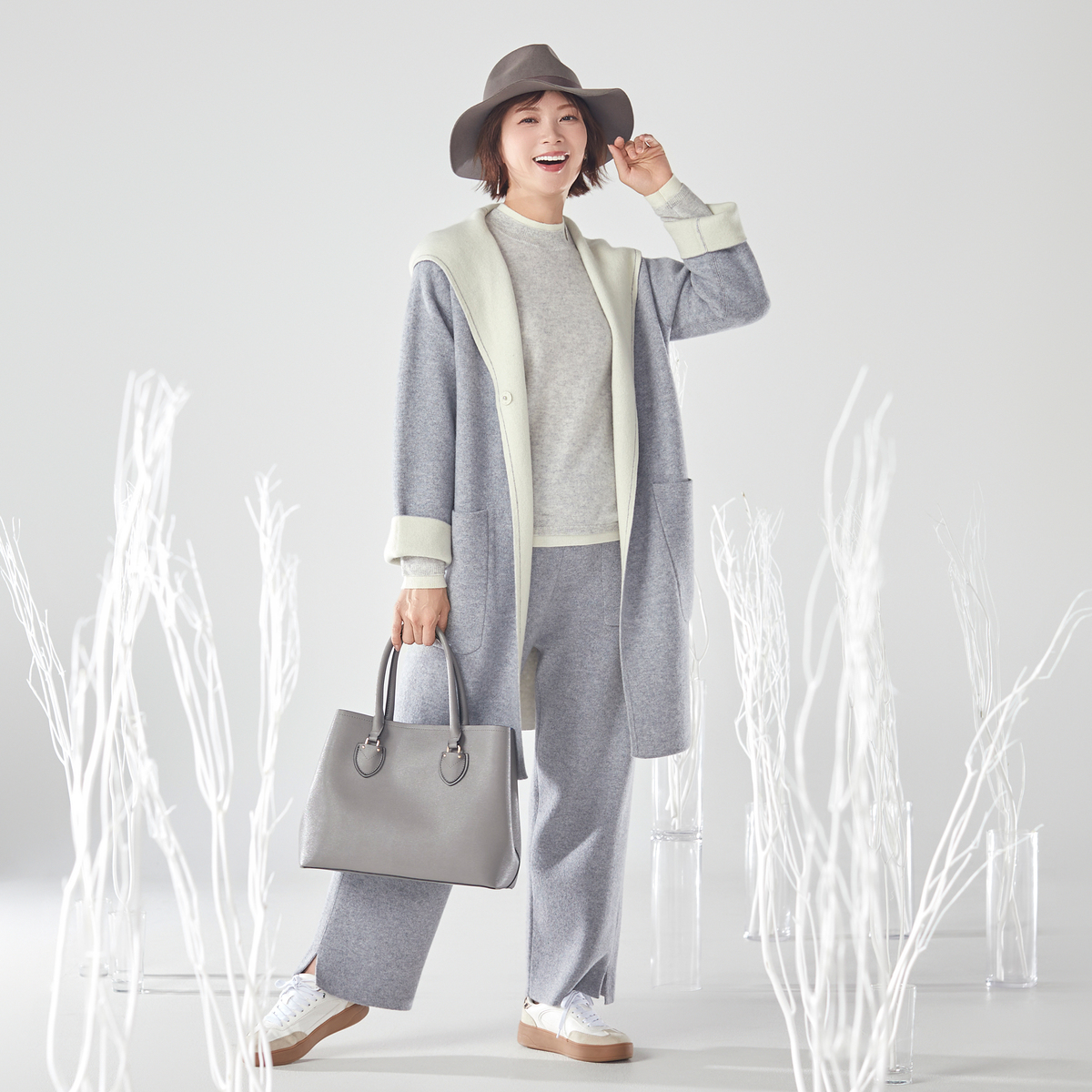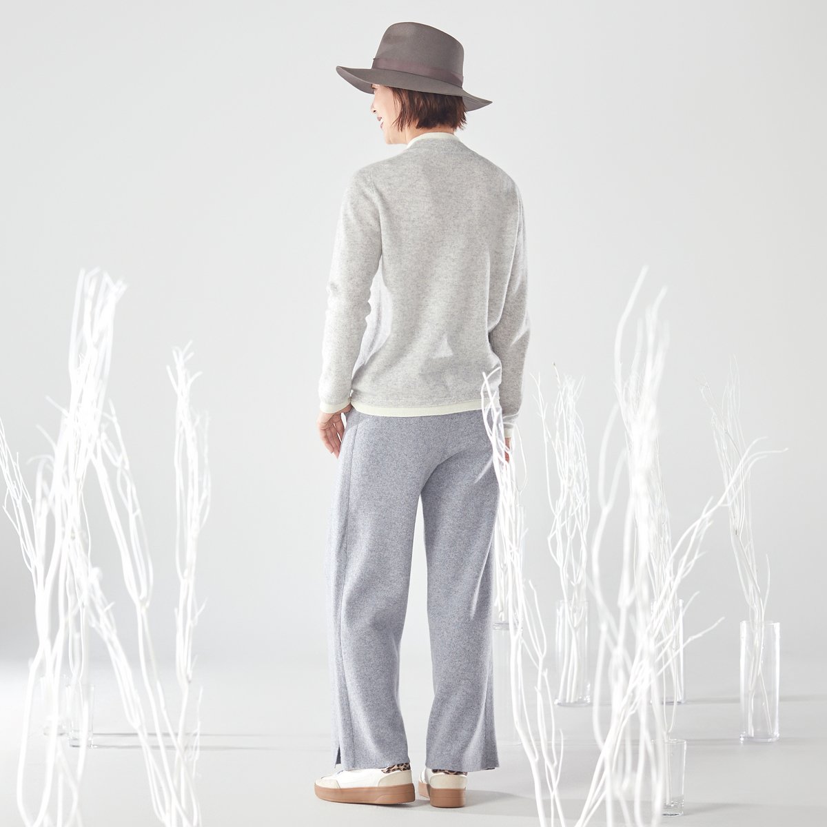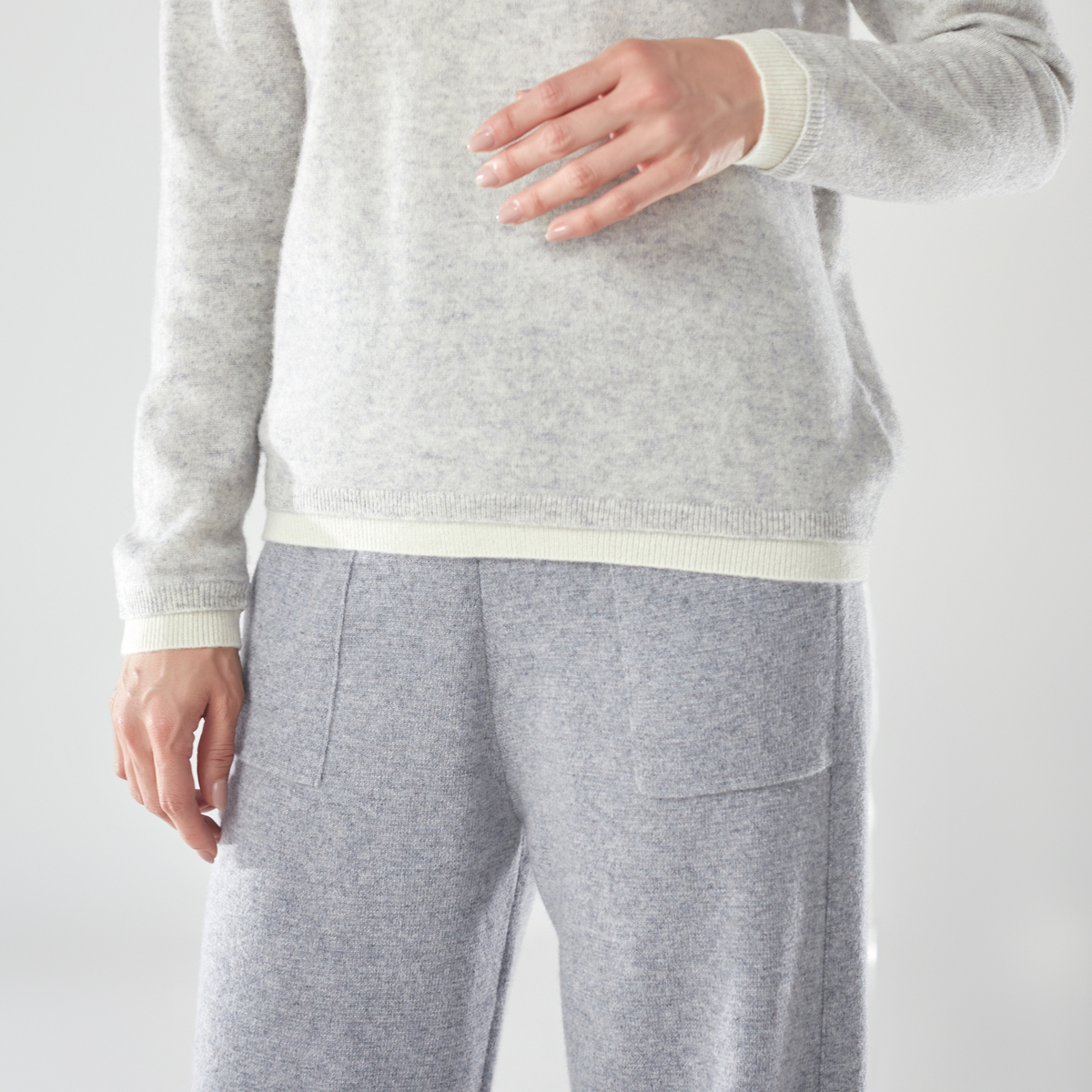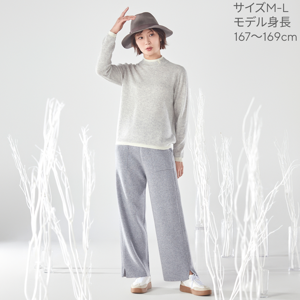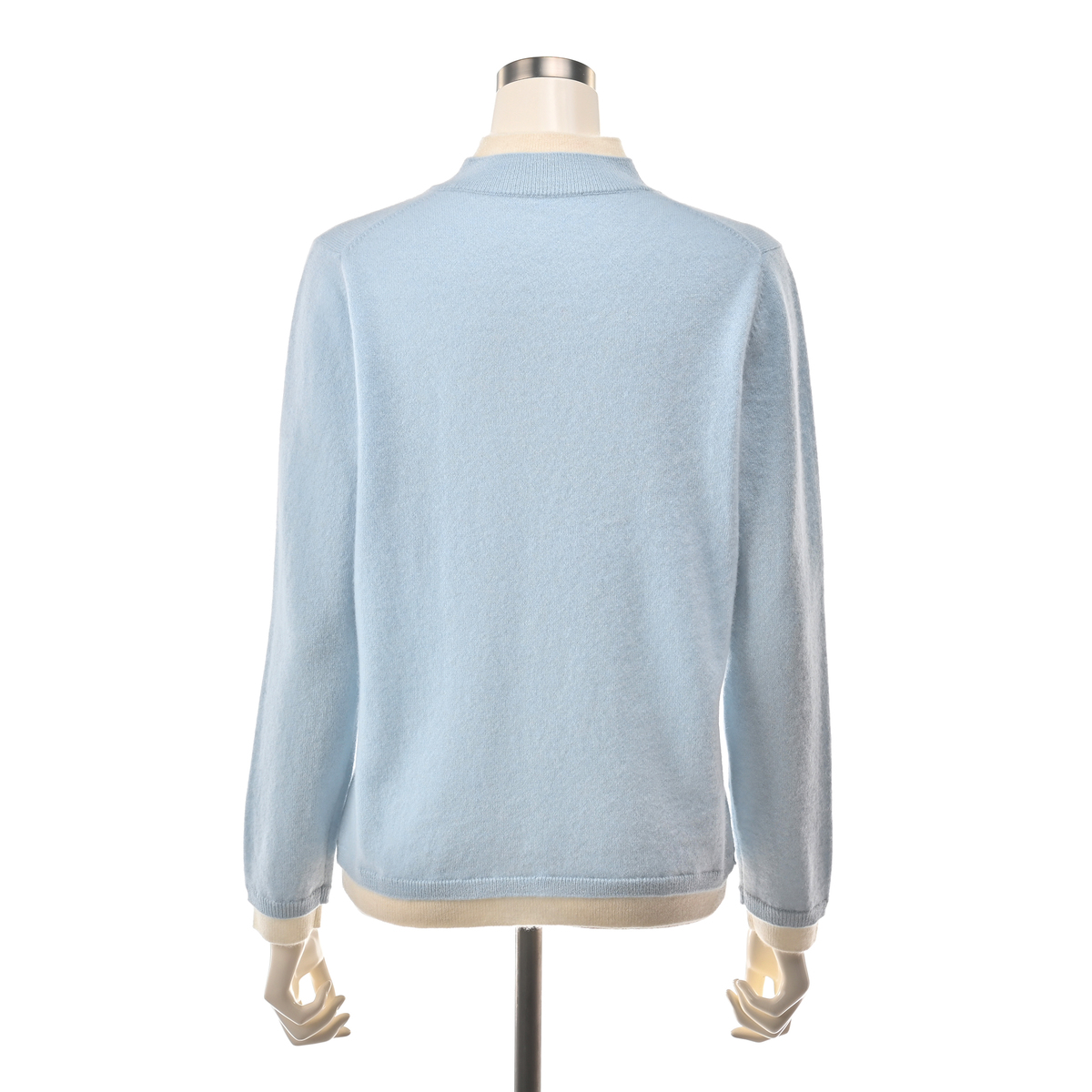 内モンゴル産ホワイトカシミヤを使用した贅沢なプルオーバーです。発色の良さも特長の、ホワイトカシミヤならではの色合いに。シンプルなレイヤード風デザインに、減らし目でシルエットを入れています