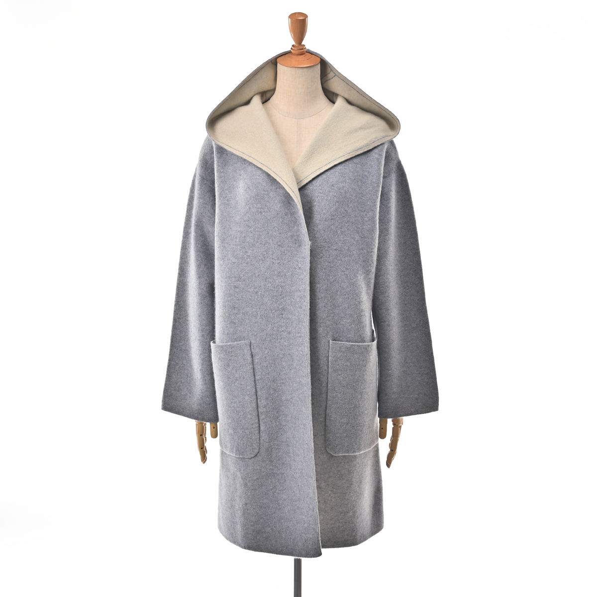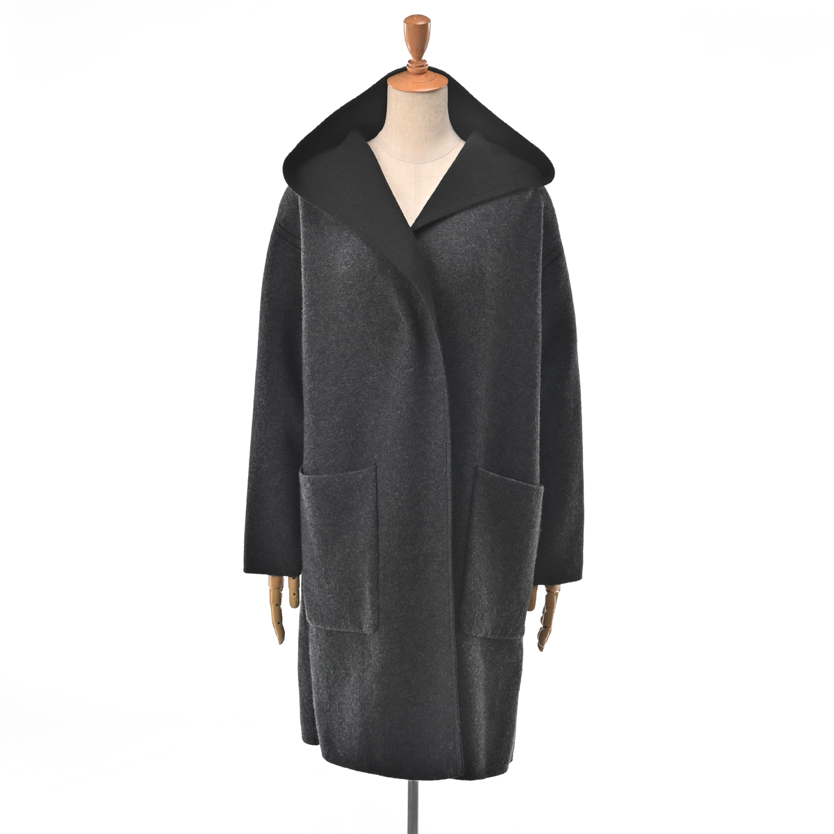 No. 744664 CASHYAGE カシミヤ100% リバーシブルフーディーニットコート