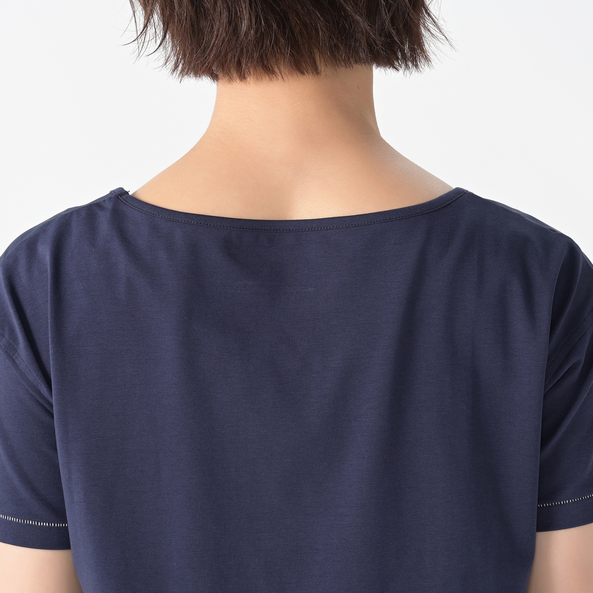 前身頃にサラサラストレッチ素材、背中と袖はカットソー綿混天竺素材を使用したドッキングTシャツ。ゆったりとしたシルエットで暑い季節もさらりと着こなせます