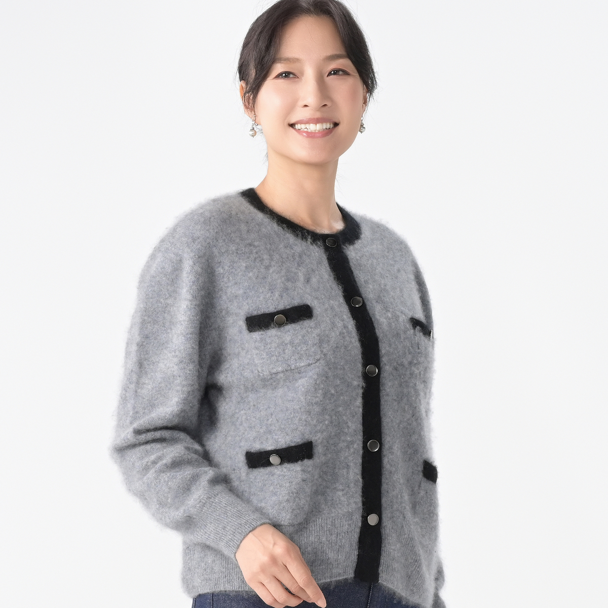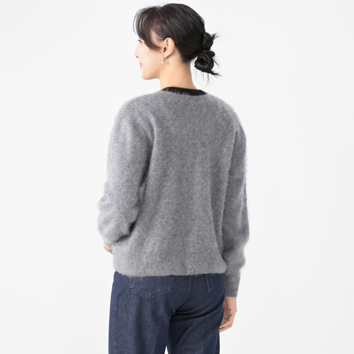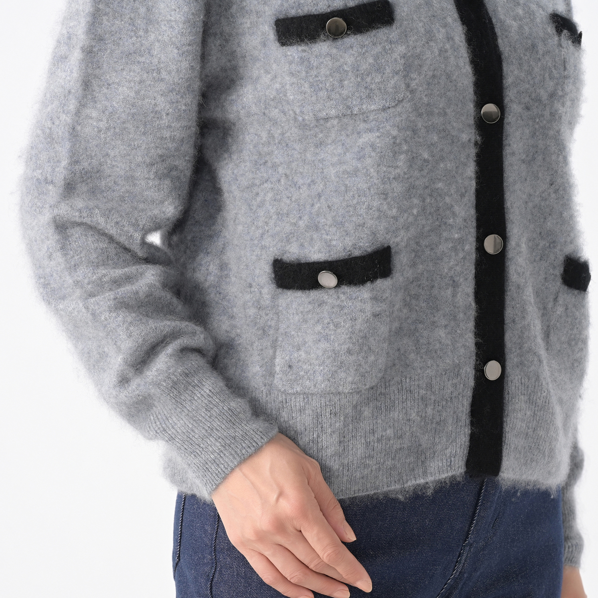 世界有数の産地である内モンゴル産ホワイトカシミヤを100%使用した上質なカーディガン。ホワイトカシミヤは脱色不要で、下地が白いため発色が美しく、色の入りがよいのが特徴です