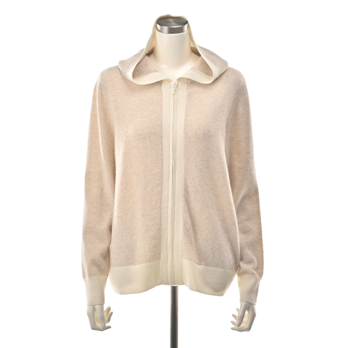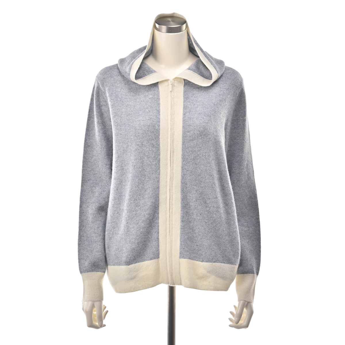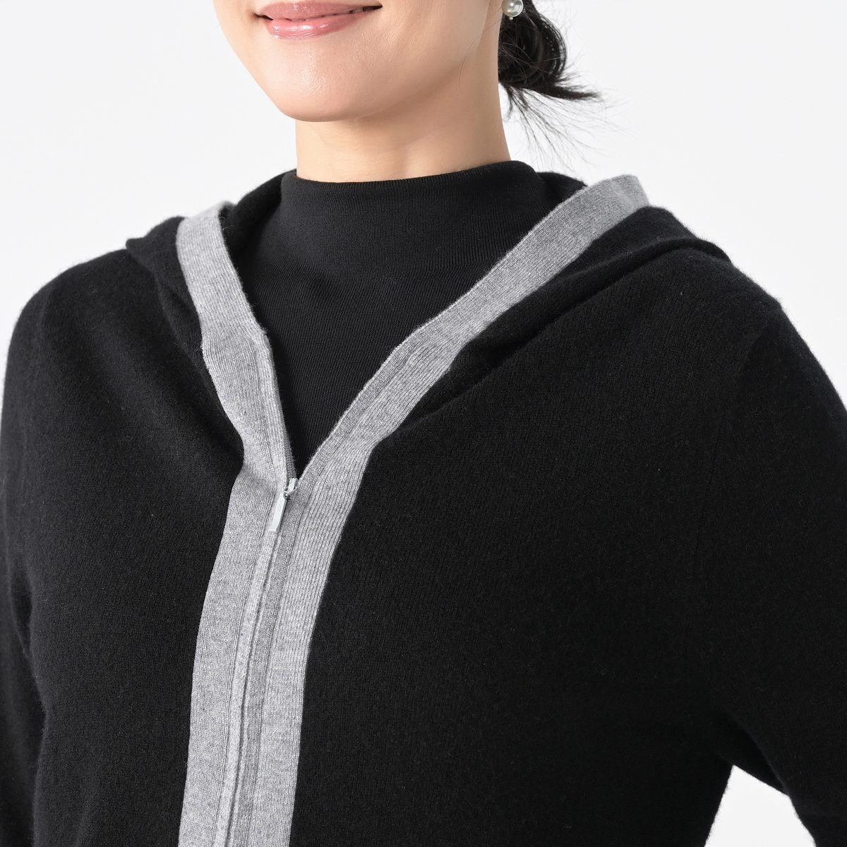 No. 744673 CASHYAGE カシミヤ100%配色ジップアップフーディ