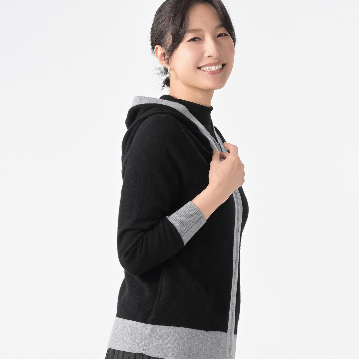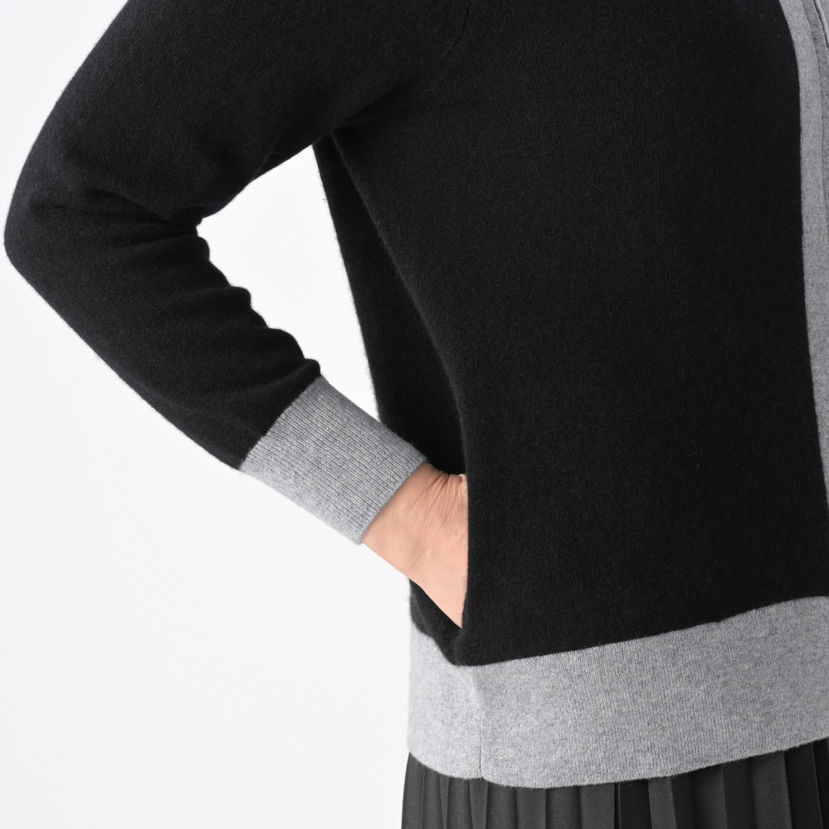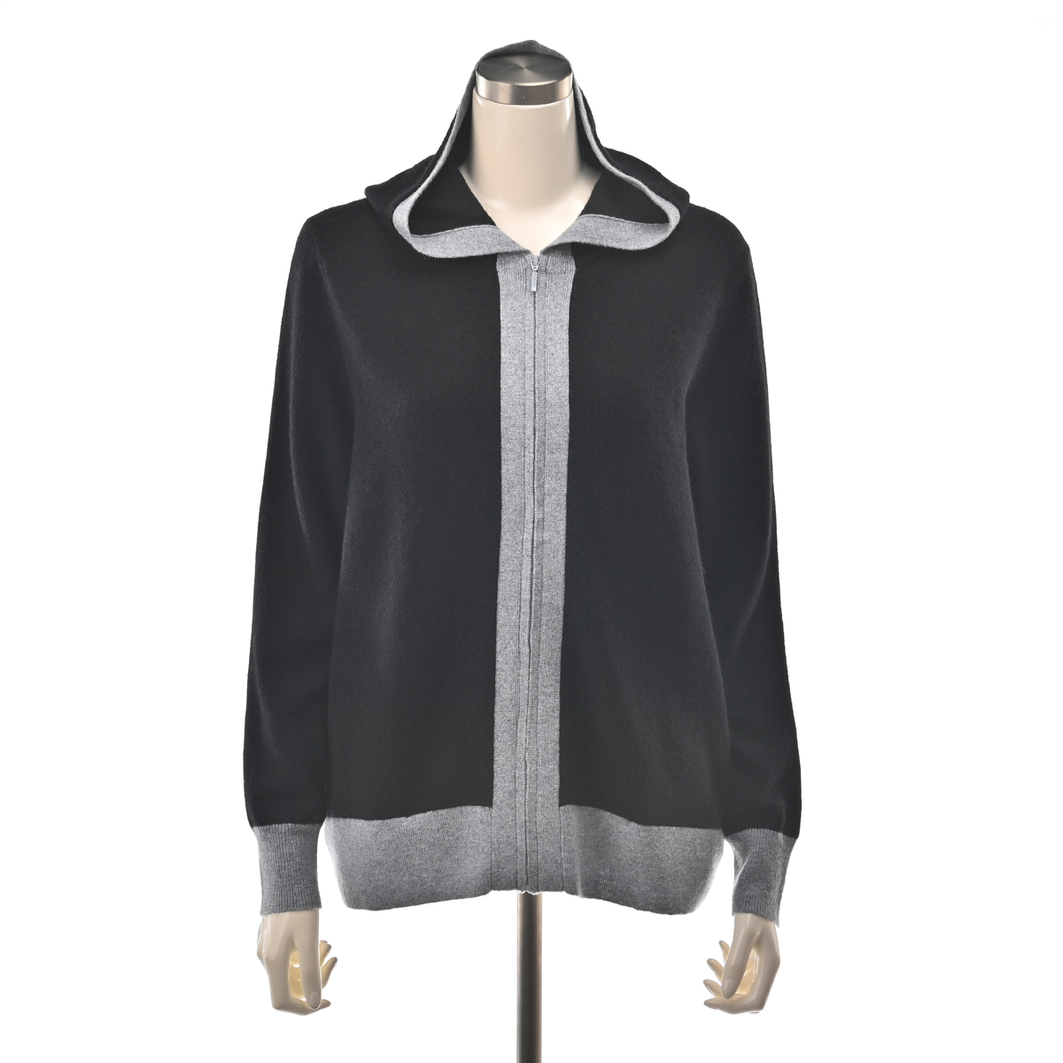 No. 744673 CASHYAGE カシミヤ100%配色ジップアップフーディ
