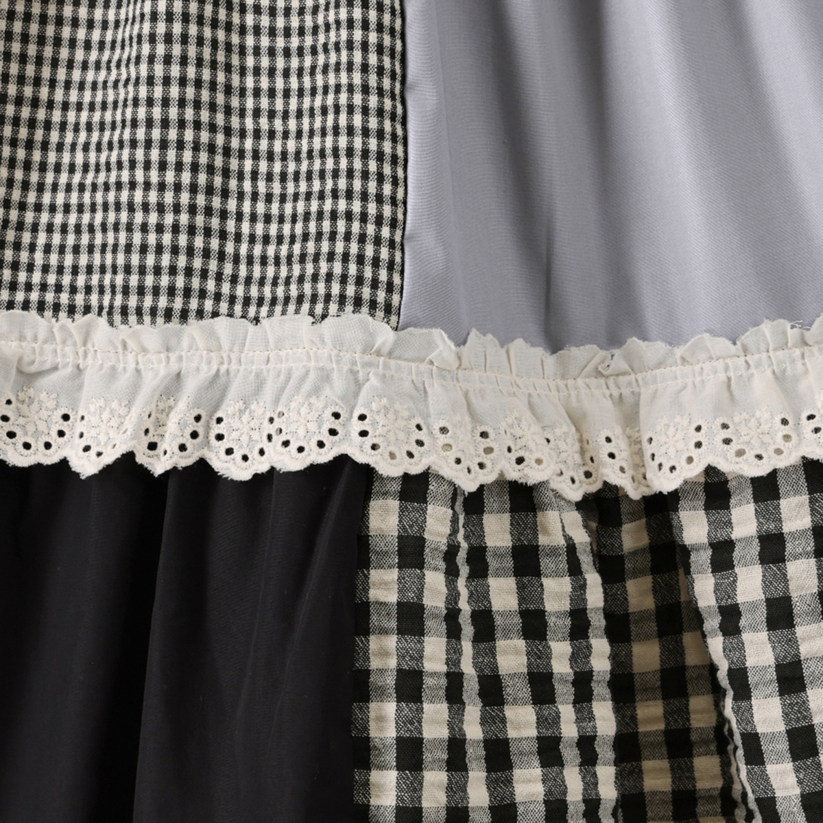 [商品寸法(ヌード)cm] サイズ ウエスト ヒップ 丈 S : 63(58〜64) (82〜90) 82.5 M : 68(64〜70) (87〜95) 83.5 L : 72(69〜77) (92〜100) 84.5 LL : 78(77〜85) (97〜105) 85.5 [ウエストゴム] 全体に有 [素材] 無地部分:ポリエステル82% 綿18% 格子柄部分:ポリエステル100% レース:綿100% [お手入れ] 手洗い可 【中国製】