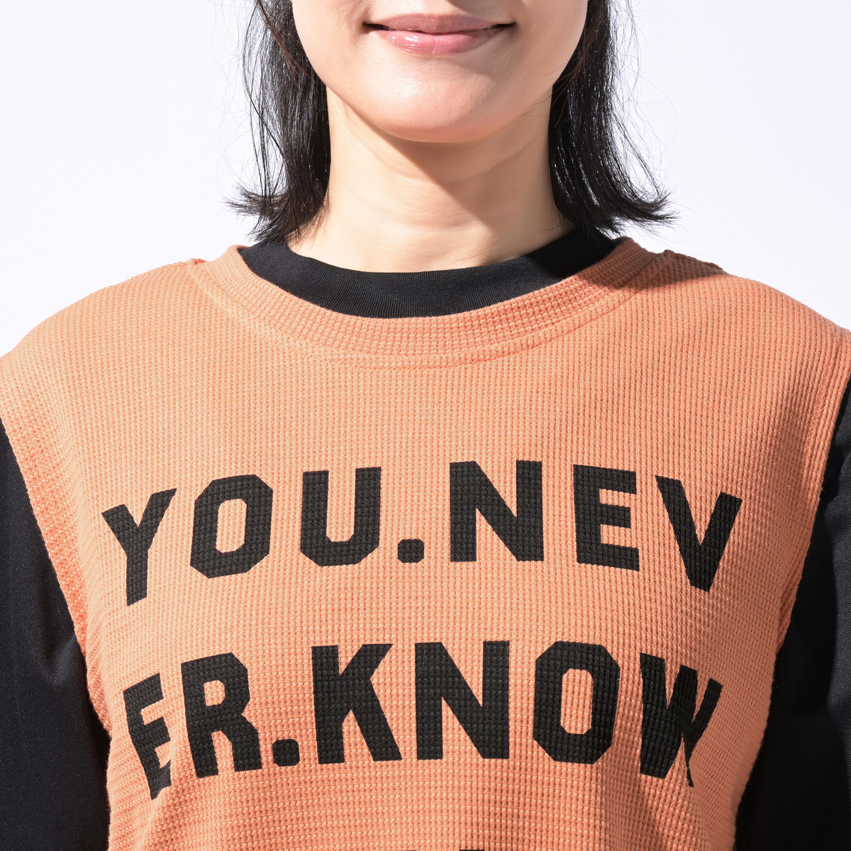 素材感が好きです。丈も長めで良いです。厚すぎず薄すぎずのワッフル素材で、私は1枚で着るよりもベスト感覚で着たいなと思いました。グレーのSを購入しましたが、色違いを購入しようか検討中です。