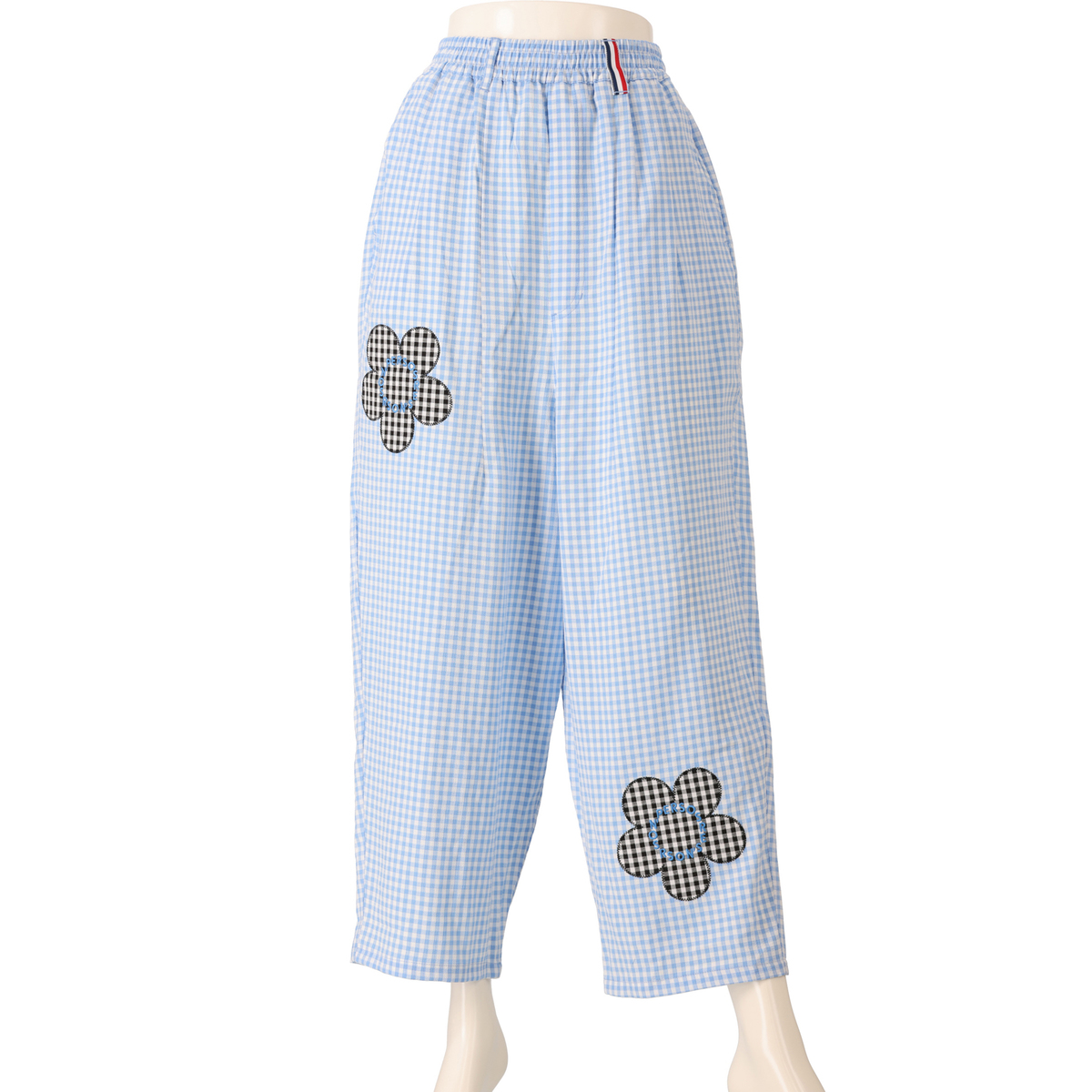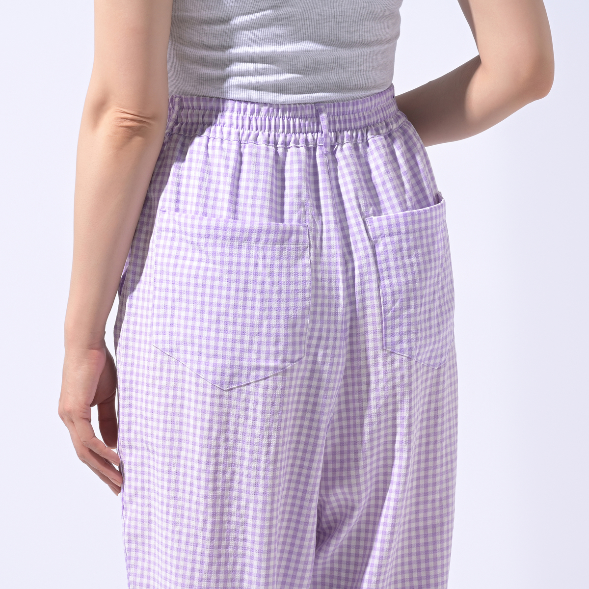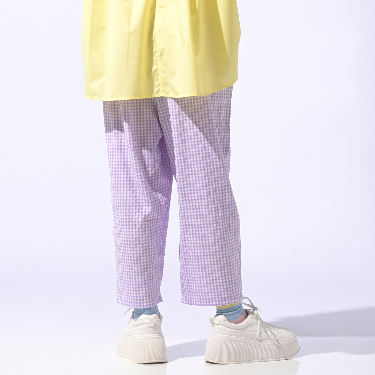 大人可愛いギンガムチェックパンツ。小さなギンガムチェック柄で様々なアイテムと合わせやすく、コーデに活躍してくれます