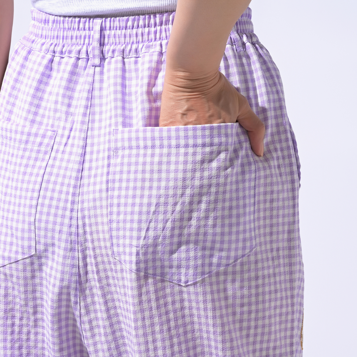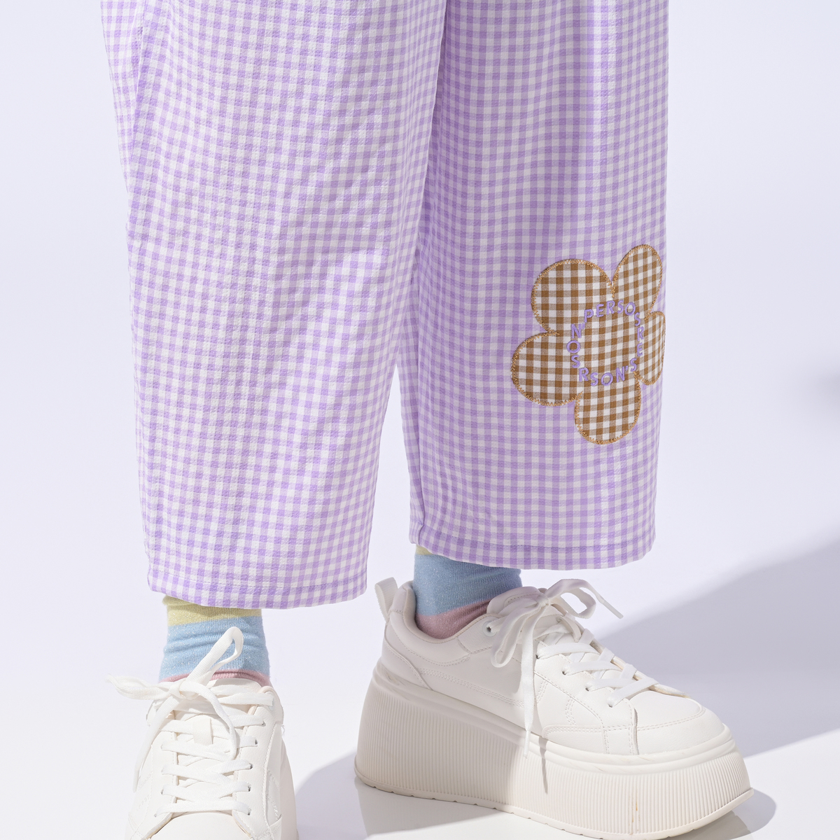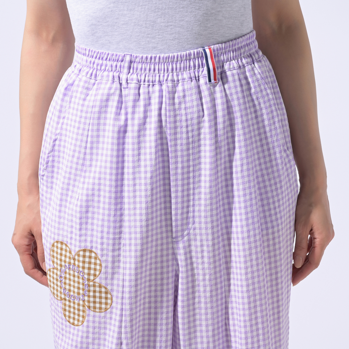 大人可愛いギンガムチェックパンツ。小さなギンガムチェック柄で様々なアイテムと合わせやすく、コーデに活躍してくれます