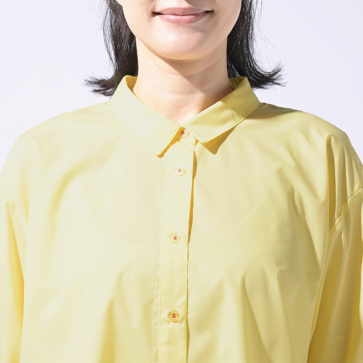 この生地の薄さなら真夏でも着られるかと思い購入しましたが、生地自体の通気性が悪くて、着ていて汗が蒸発しない感覚が有り暑いです。デザインは可愛くて気に入ったのでもう少し涼しくなったら着ようと思いました。