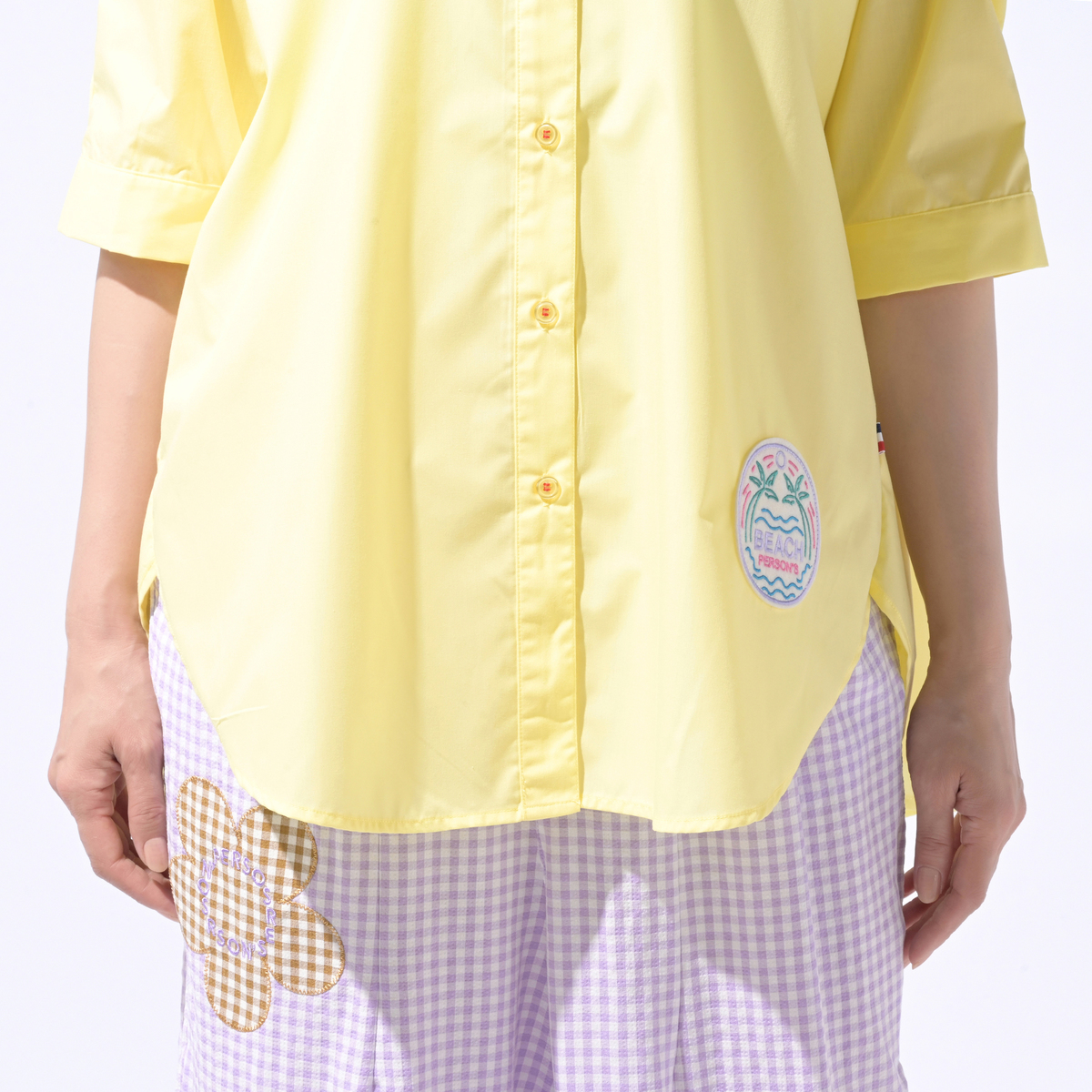No. 744690 PERSONS バックギャザー半袖シャツ