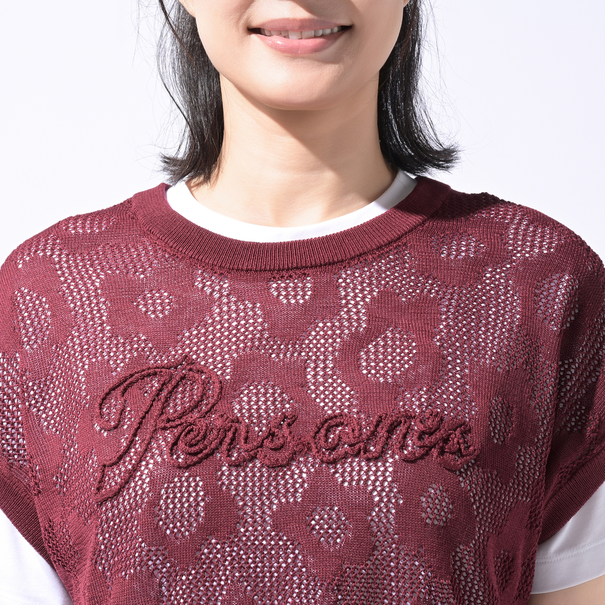 No. 744692 PERSONS フラワージャガードメッシュニットベスト