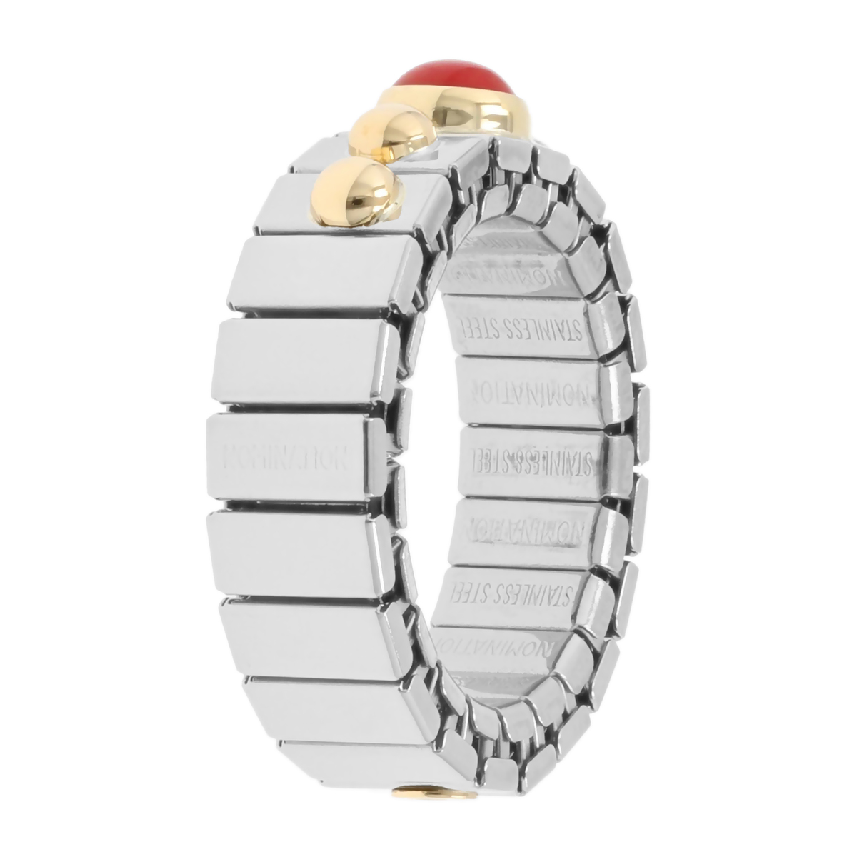 素材: <ターコイズカラー> [模造石] ラウンドシェイプ・カボションカット ベゼルセッティング 1石 <パール> [淡水パール] ラウンドシェイプ・カボションカット ベゼルセッティング 1珠 <コーラルカラー> [模造石] ラウンドシェイプ・カボションカット ベゼルセッティング 1石 <エメラルドカラー> [エメラルド] ラウンドシェイプ・カボションカット ベゼルセッティング 1石 最大幅(約) 6.5mm 最小幅(約) 6.5mm 総重量(約) 4.2g [対応サイズ] M:11〜13号 L:14〜16号 [地金] ステンレス(本体)、18Kイエローゴールド(一部) ■素材の大きさ・形・色合い、製品のサイズは1点1点多少異なります ■専用ケース付 ■伸縮性があるため、表示サイズはおおよそのものとなり、装着感には個人差があります 【イタリア製】