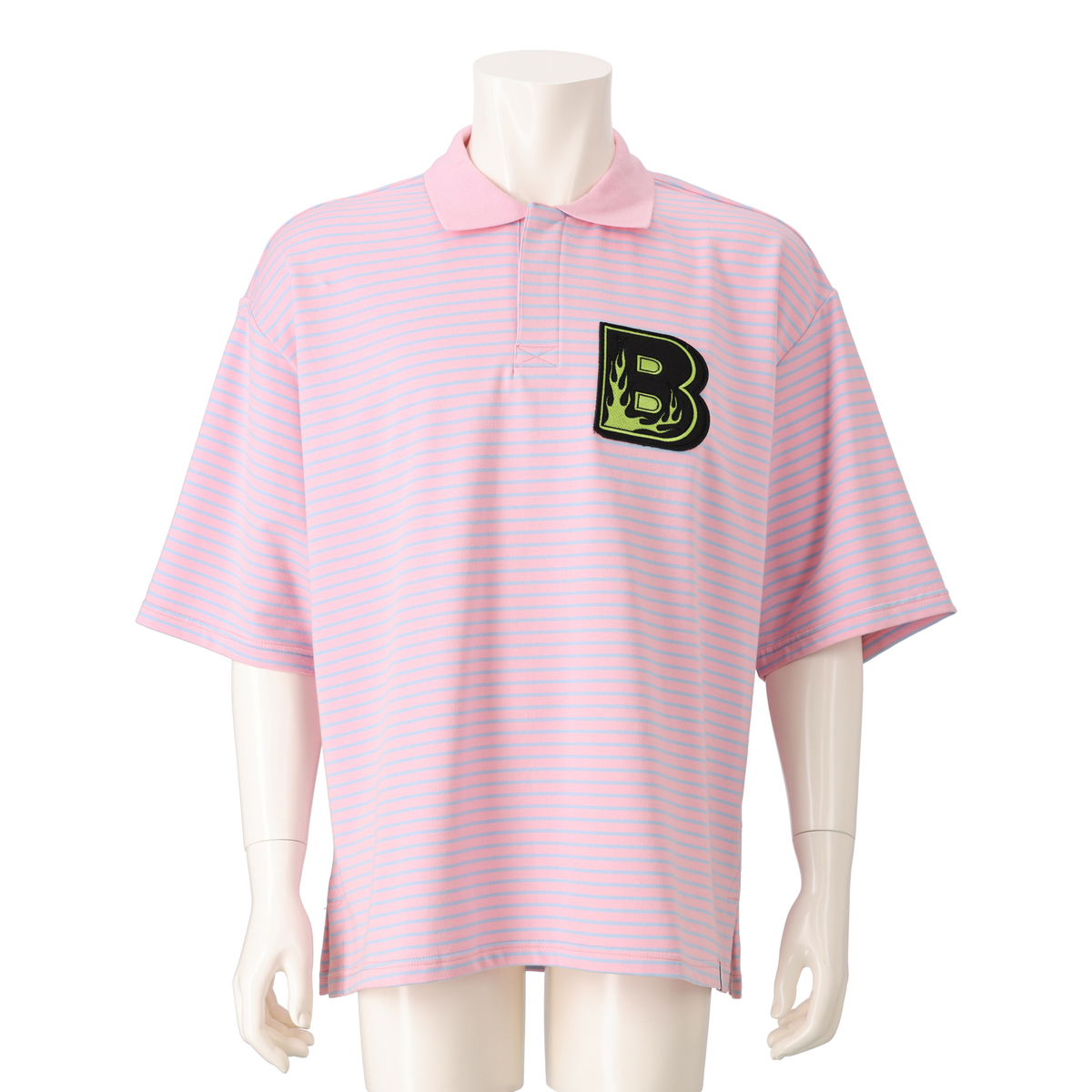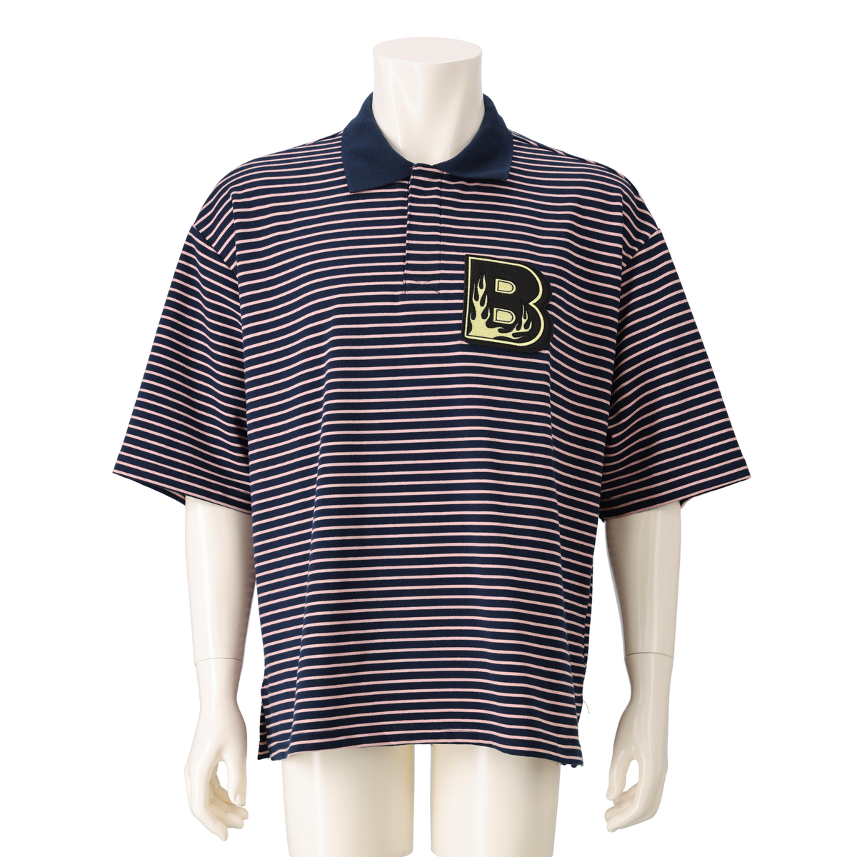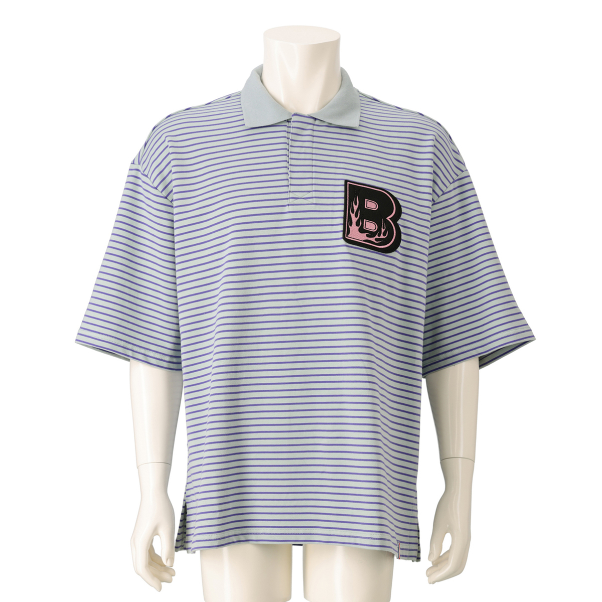 ボーダー柄が可愛らしいポロシャツ。薄手のミニ裏毛素材で仕立てました。ゆったりとしたシルエットで、男女問わず、着用いただけます