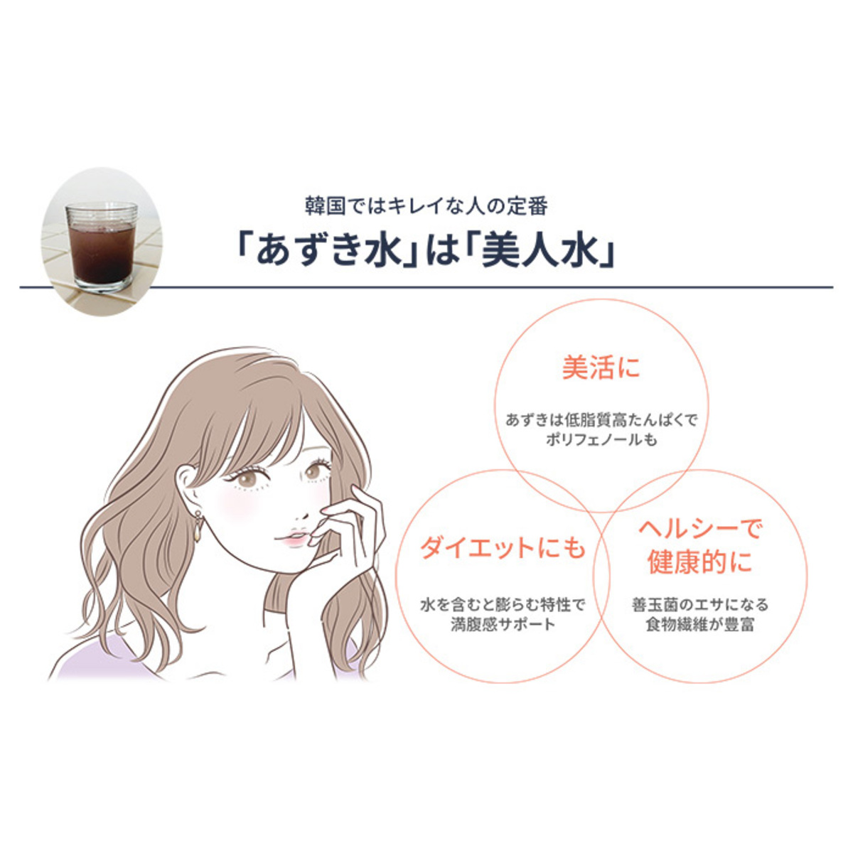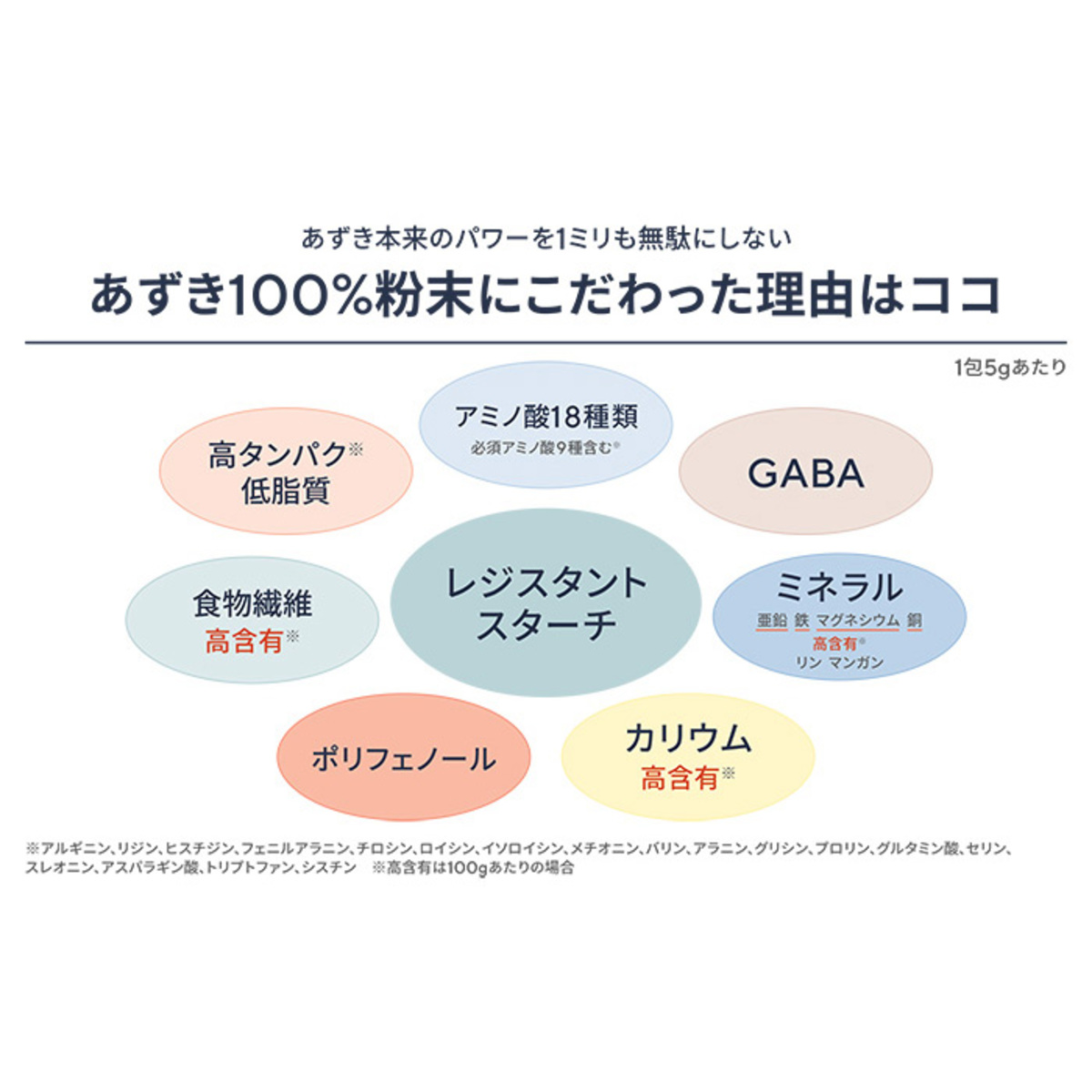 水などと共にお召し上がりください。お湯に溶いてお召し上がりの場合は、あずきパウダー1包(5g)を150mlの水に入れ、電子レンジ(600W)で約1分30秒ほど加熱することでザラつきが気になりにくくなります。牛乳またはお好みの飲料に混ぜても美味しくお召し上がりいただけます