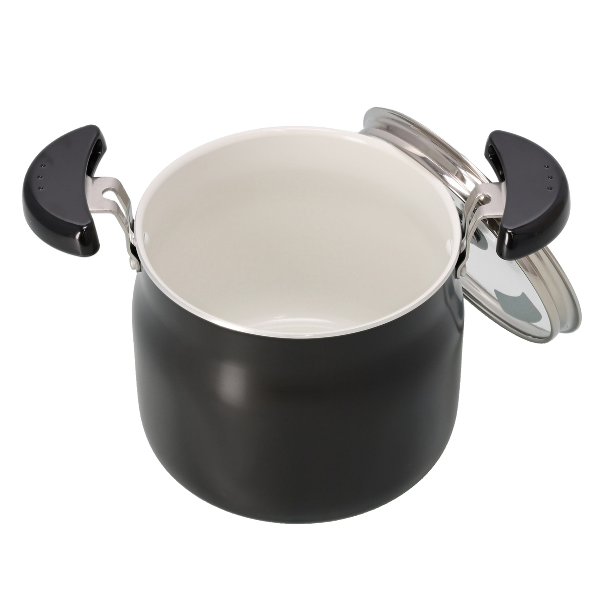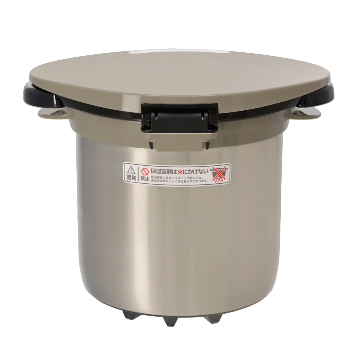 [商品内容] ・保温容器 ・調理鍋 ・調理鍋フタ ・クッキングブック [サイズ] 保温容器:縦27×横31×高さ24cm 内鍋:縦19×横31×高さ20cm 寸法(最大内径):19.5cm [重量] 約3260g [満水容量] 4500ml [材質] 本体:アルミニウム合金 はり底:ステンレス鋼(クロム13%)(底の厚さ:2.9mm(はり底を含む)) 表面加工 内面:セラミック塗膜加工 外面:(底面を除く)焼付け塗装 調理鍋フタ:強化ガラス製器具(ガラス製フタ)/全面物理強化 [使用方法] <保温調理機能> 1.調理鍋を保温容器から取り出します 2.付属のクッキングブックを参考にして調理鍋に材料や調味料を入れ、火にかけます 3.沸騰したら、吹きこぼれないように火加減を調節して加熱を続けます。この時間を沸騰調理時間と呼びます 4.調理鍋を火からおろして保温容器に入れ、保温します。この時間を保温調理時間と呼びます 5.保温調理時間が過ぎたら、保温調理は完了です <保温機能> 1.料理を調理鍋に入れて火にかけ、こげ付かないようにかき混ぜながら沸騰させます 2.沸騰したら火を止めて、調理鍋を保温容器に入れ、保温容器フタを閉めて完了です ■取り扱い説明を十分にご確認の上、ご使用下さい ■IH200V迄・電気調理器 対応可 【中国製】 [注意事項] ※使用不可:食器洗い機 ※保温容器は絶対に火にかけないでください ※油をひいて料理する際は加熱しすぎない(油温を200℃以上にしない)でください。また、そばから離れないでください ※乳幼児の手の届くところに置いたり、使用したりしないでください。また、いたずらには十分注意してください ※てんぷらやフライなど多量の油を入れる料理には使用しないでください ※保温容器に直接食品や材料を入れないでください ※保温容器の上に調理鍋や調理器具などを載せないでください ※汚れた状態やぬれた状態、調理鍋に内容物を残した状態で放置しないでください ※調理鍋にさび、腐食が生じたまま放置しないでください ※保温調理中は保温容器フタ、調理鍋フタの開け閉めをできるだけ少なくしてください ※調理鍋に入れる材料は8分目までを目安とし、フチまで材料を入れて調理しないでください ※少量で保温すると、内容物の温度が下がりやすく、保温効果が低下する原因になりますのでご注意ください ※フタを持って保温容器を持ち上げないでください ※飲食物の調理や保温、保冷以外に使用しないでください ※調理鍋は空だきをしないでください。万一誤って空だきした場合に水をかけて急冷しないでください ※みそ汁、カレー、シチュー、などを加熱、再加熱する際は次の点を必ずお守りください。一気に強火で煮立てないでください。加熱前と加熱中はよくかき混ぜ、弱火で温めてください ※調理鍋フタは耐熱ガラスではありません。次の点を必ずお守りください。火の近くや熱くなったコンロなどの上に置いたり、急激に冷却したりしないでください。調理鍋に片掛け(ずらして使用)はしないでください。落とす、ぶつけるなど強い衝撃を与えたり、表面に傷をつけたりしないでください。お手入れの際は研磨剤入りタワシ、金属製タワシ、クレンザーなどは使用しないでください ※調理鍋を保温容器にセットして運ぶときは、必ず保温容器取っ手を持ってください ※保温容器はストーブやコンロなどの火気に近づけないでください ※使用中や使用直後は調理鍋取っ手および調理鍋フタつまみ以外に触れないでください ※加熱調理時は調理鍋より外側へ炎を出さないでください ※長時間の保温はしないでください ※電子レンジ、オーブンに入れないでください。・ストーブの上で使用しないでください ※改造、分解、修理は絶対にしないでください ※内容物を入れた状態で、車などに載せて移動しないでください ※不安定な場所に置かないでください ※落とす、ぶつけるなど強い衝撃を与えたり、アイスピックなど先のとがったもので突いたりしないでください ※製品には必ず専用の部品を取り付けてください <調理鍋フタ> ※耐熱ガラスではありません ※火の近くや熱くなったコンロなどの上に置いたり、急激に冷却したりしないでください ※調理鍋に片掛け(ずらして使用)はしないでください ※強い衝撃を与えたり、傷を付けたりしないでください ※お手入れの際は研磨剤入りタワシ、金属製タワシ、クレンザーなどは使用しないでください ※破損した場合、破片が鋭利なかけら、または細片となって激しく飛散することがありますのでご注意ください