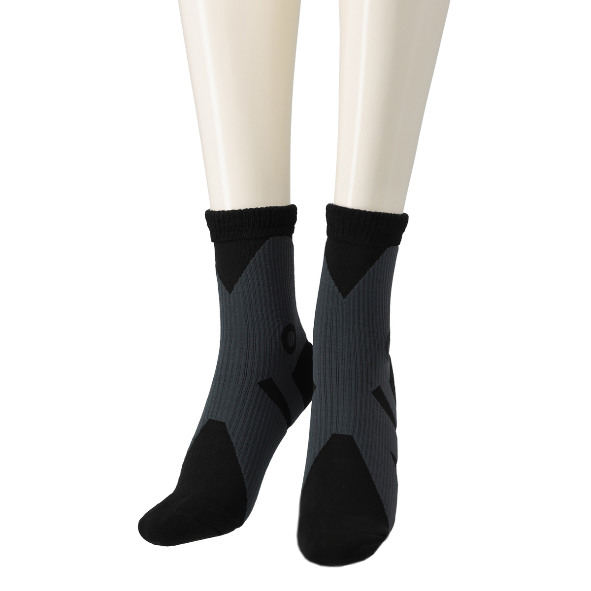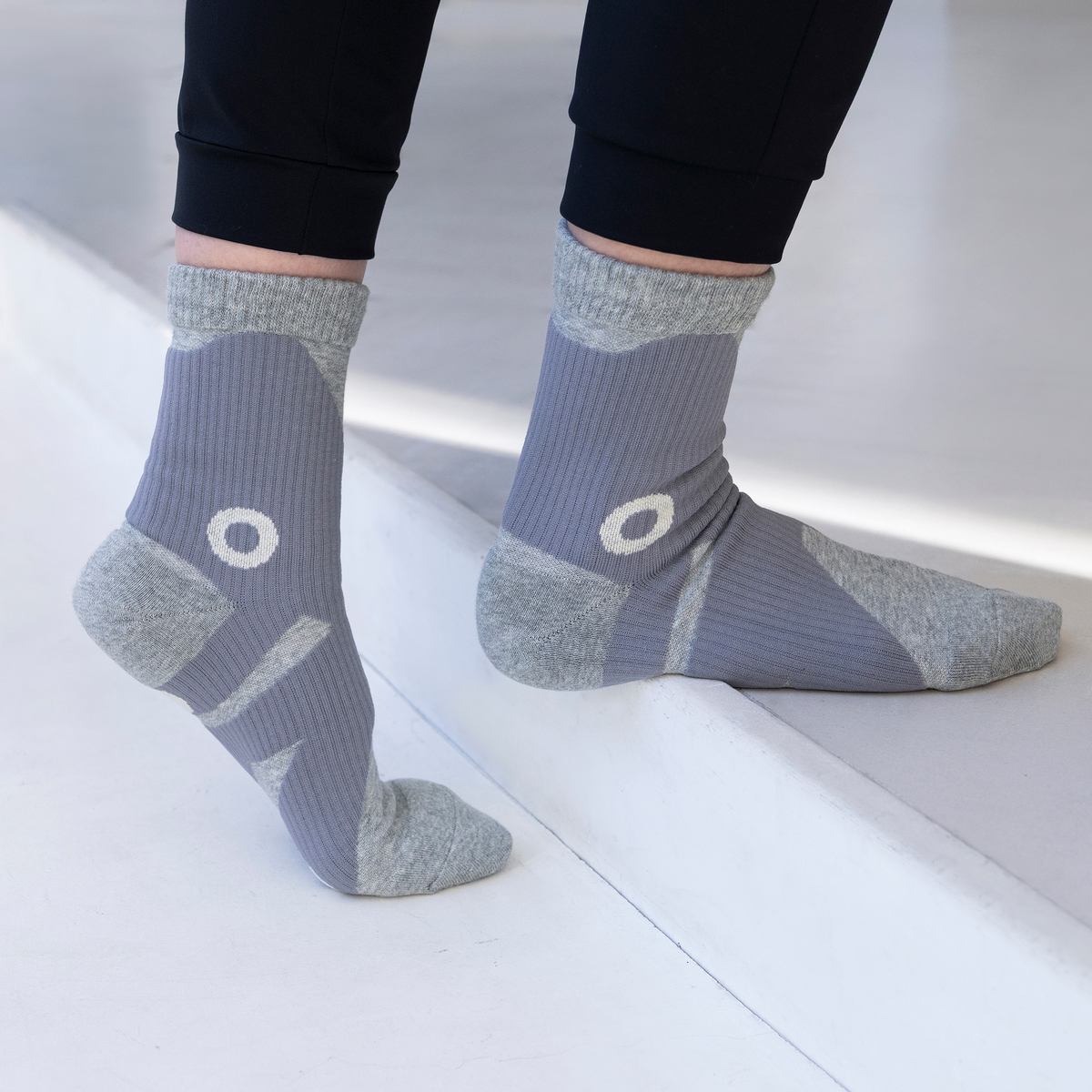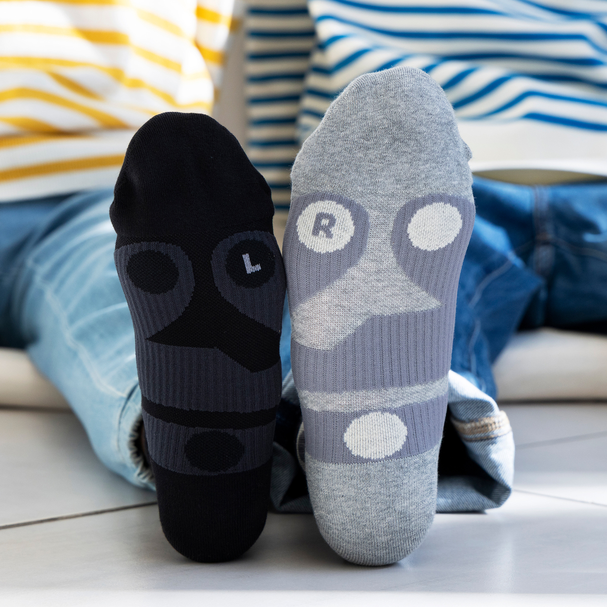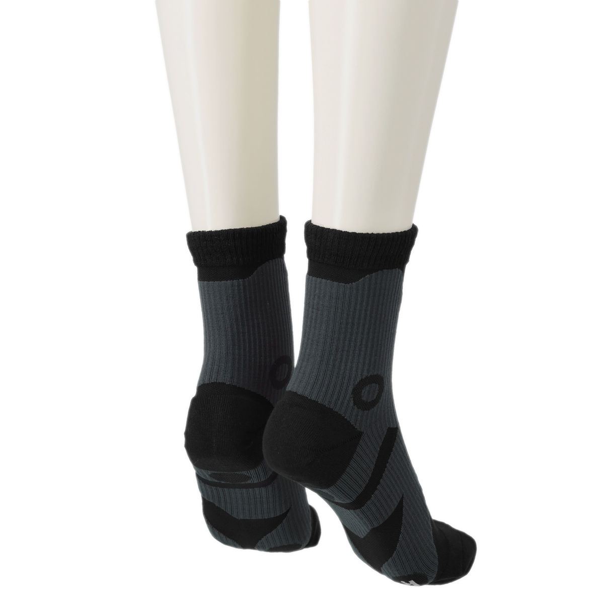 アスレティックトレーナー杉山ちなみさんと共同開発。足首、かかとをしっかり固定。足裏のアーチ・つま先を引き上げ、かかと・小趾球・母趾球をサポートするテーピングを施したソックスです