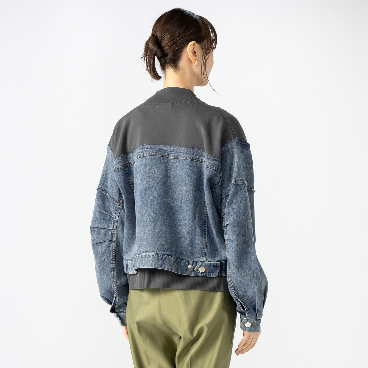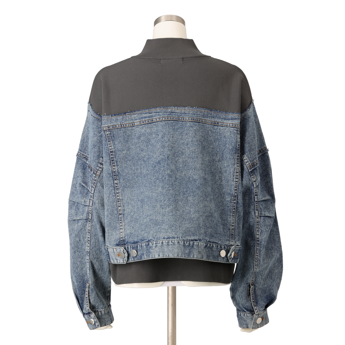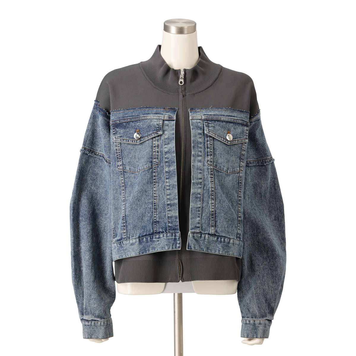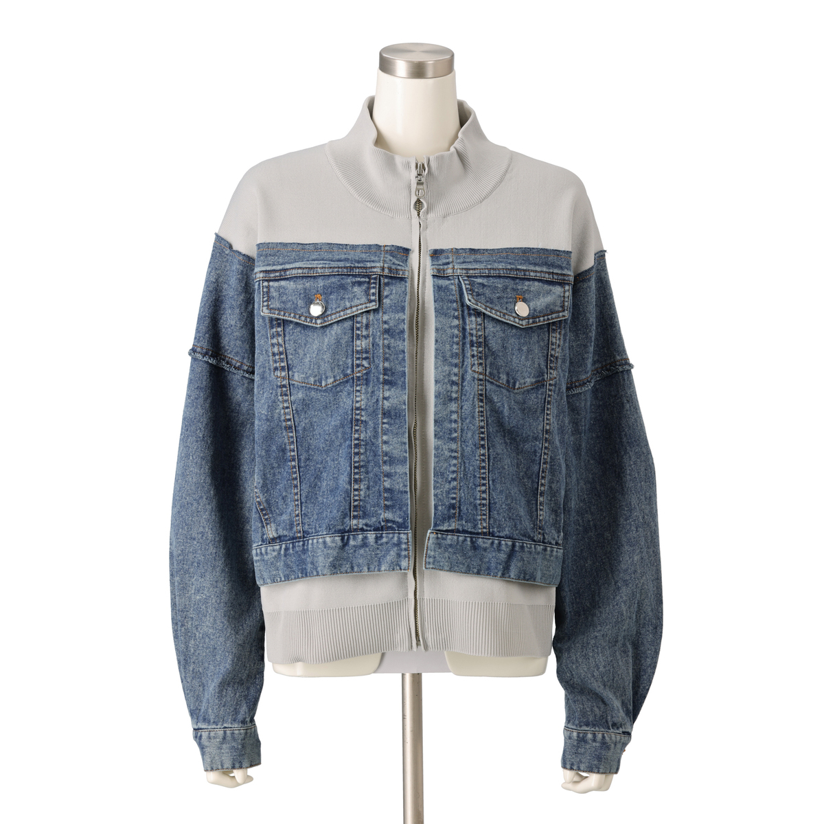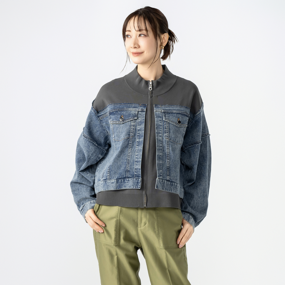 ニットとミドルオンスのデニムをドッキングしたブルゾン。トレンドのショート丈でスタイリッシュに着こなせます