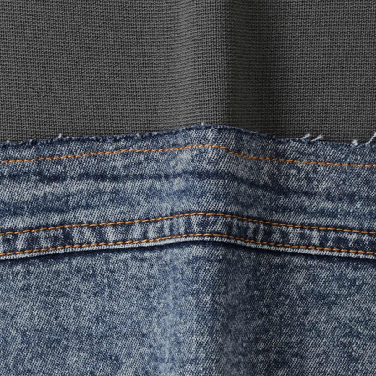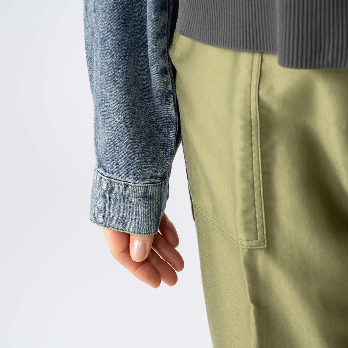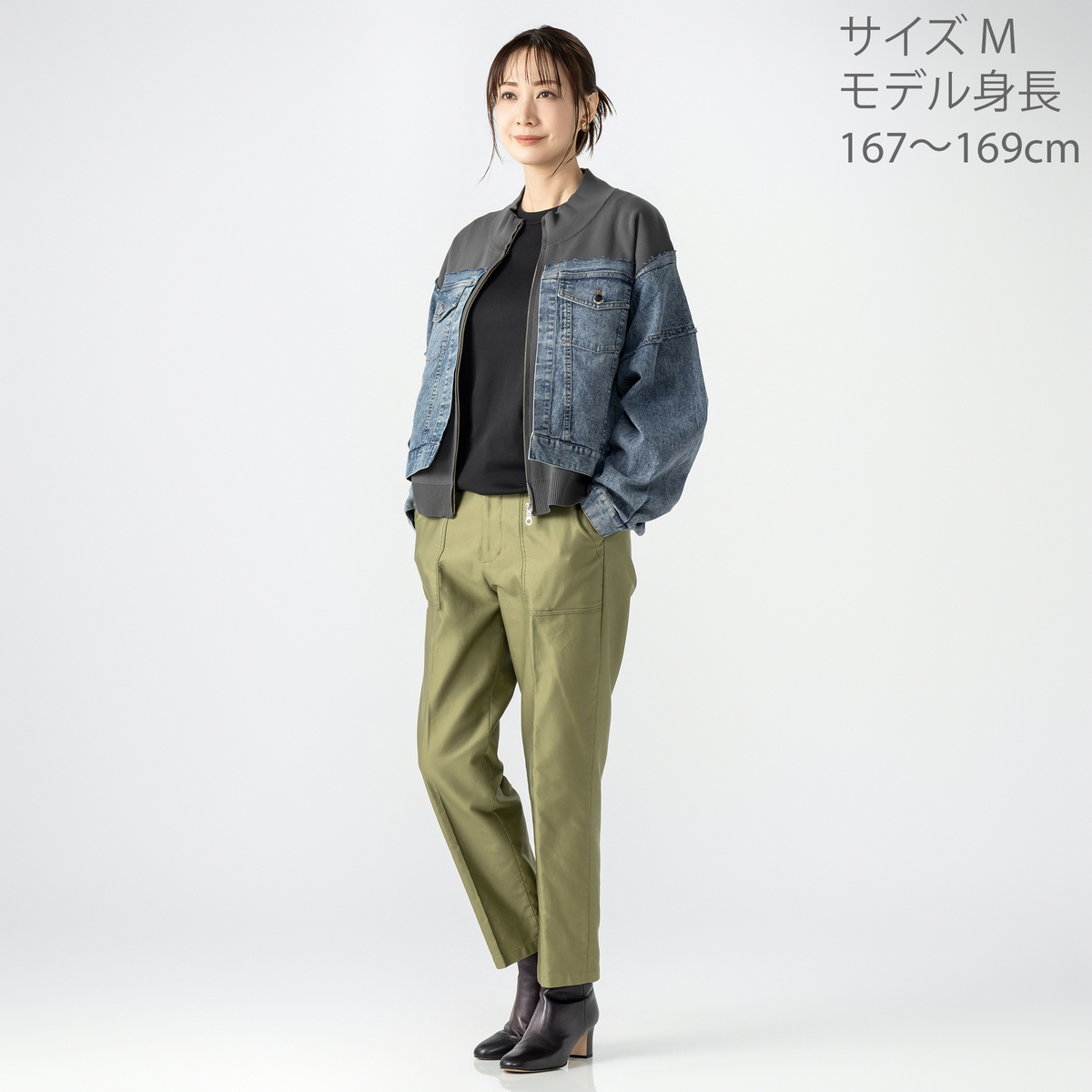 ポリエステル100%のニットと、軽やかなレーヨン混のデニムを使用。重みを感じにくく、着心地の良いアイテムです