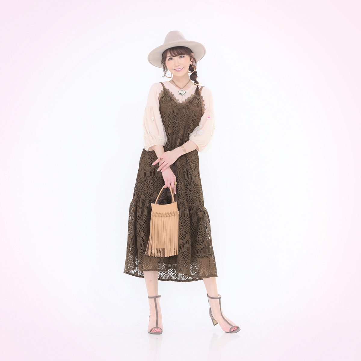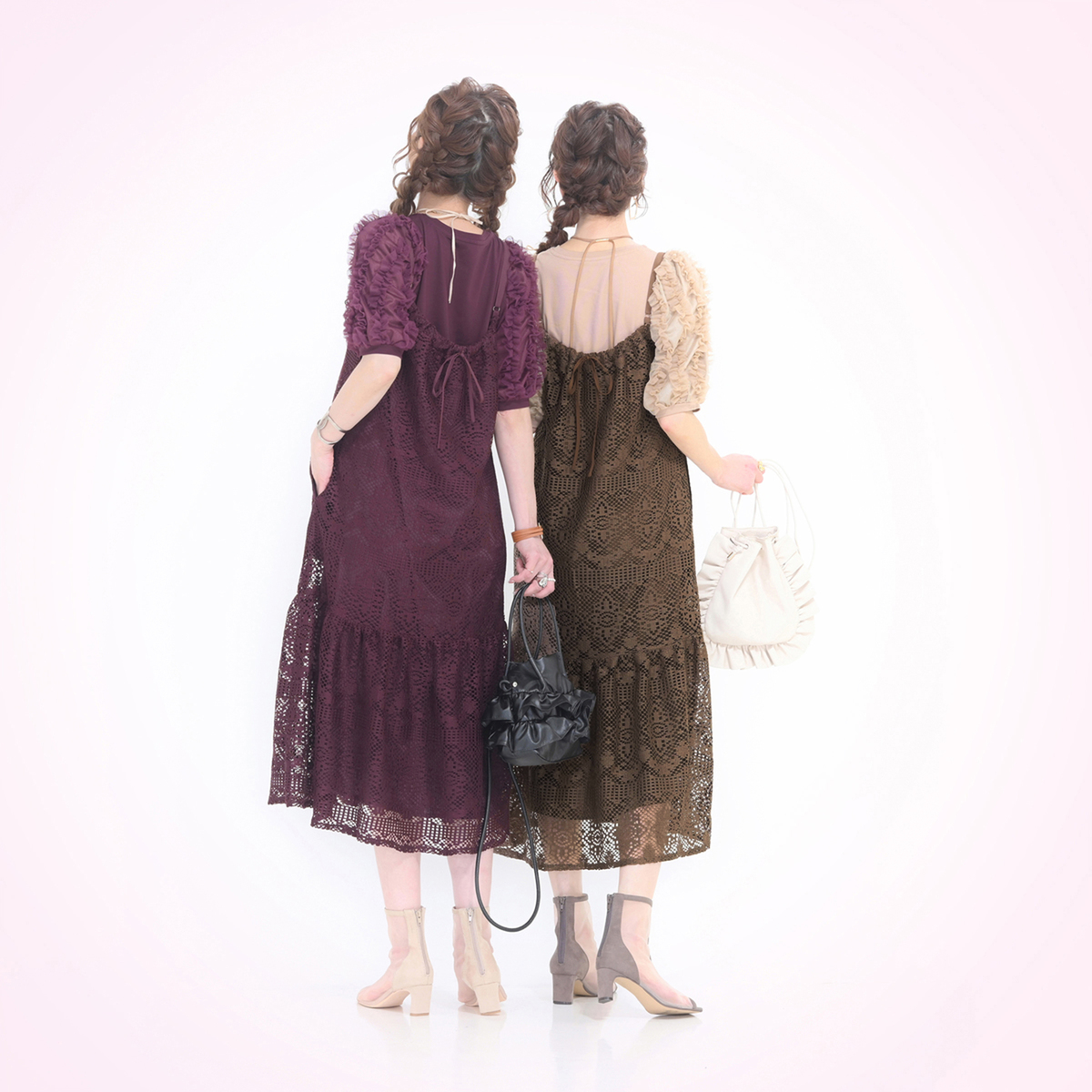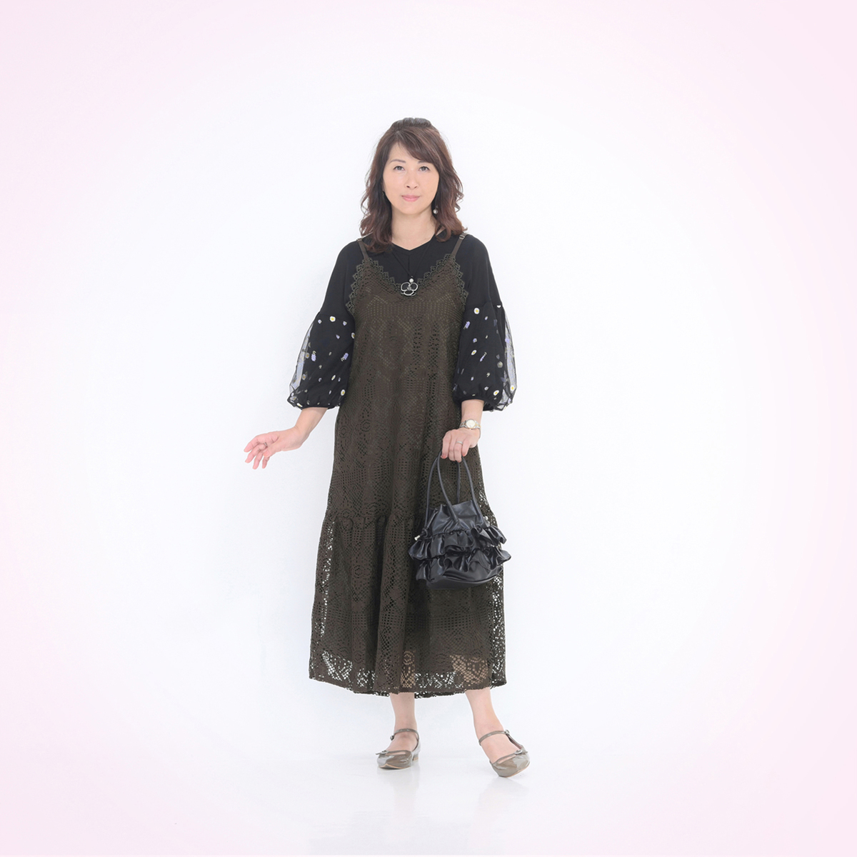 こちらも絶対買うと決めてましたー。お色はブラックのみで、ブラウンは不具合がありお返ししました。ブラックはもしかしてドレスみたいに頑張ってる人に見えないか?心配でしたが、無難に使いやすいと思います。デザインも可愛いけど、レース生地だから、後ろは絞るタイプじゃない方が良かったなー。でもアンドラブのキャミワンピースは毎回可愛くて流石ですね。次回も可愛いのお願い致します。