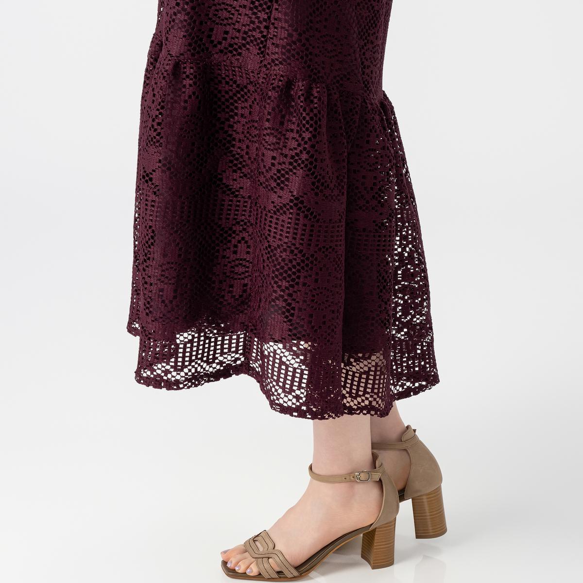 秋らしい色を購入しました。レースは引っかかりやすい感じなので気をつけて着用します。 正面から見るとAラインで可愛いのですが、横浜や後ろから見ると背中の部分が膨らんでしまう…裾の切り替えがあるから?もう少し落ち感のある素材のほうがシルエット良かったかなぁ