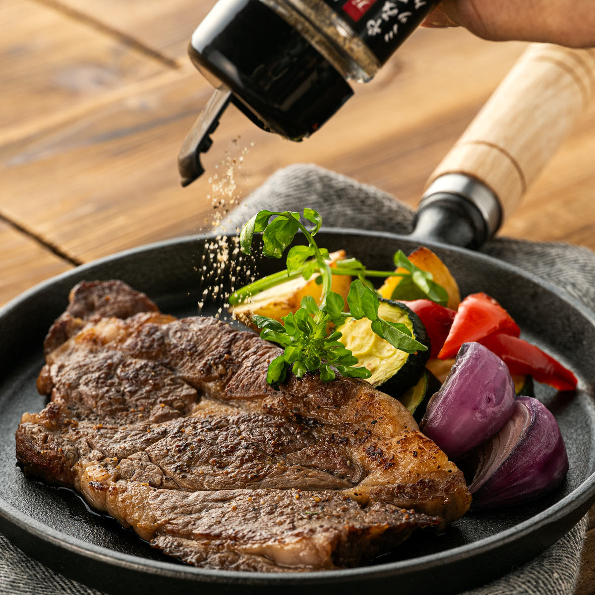 平野勝士さんが監修した万能調味料。岩塩や胡椒、チキンパウダー、トーストガーリックなどを平野さん監修のもとブレンドしました